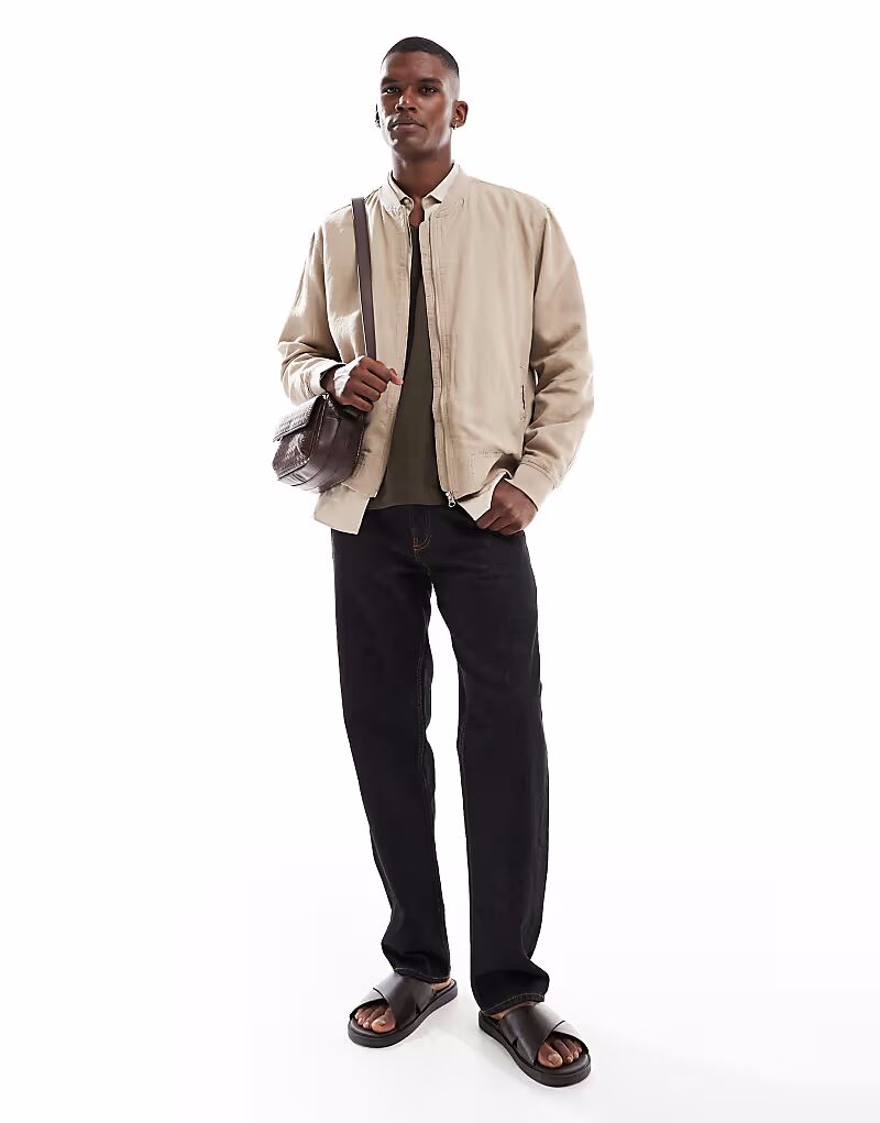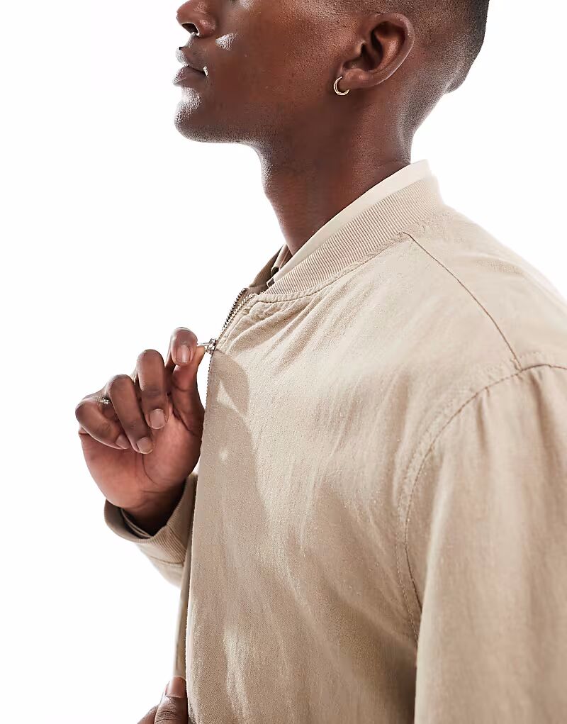 Льняная куртка-бомбер New Look бежевого цвета