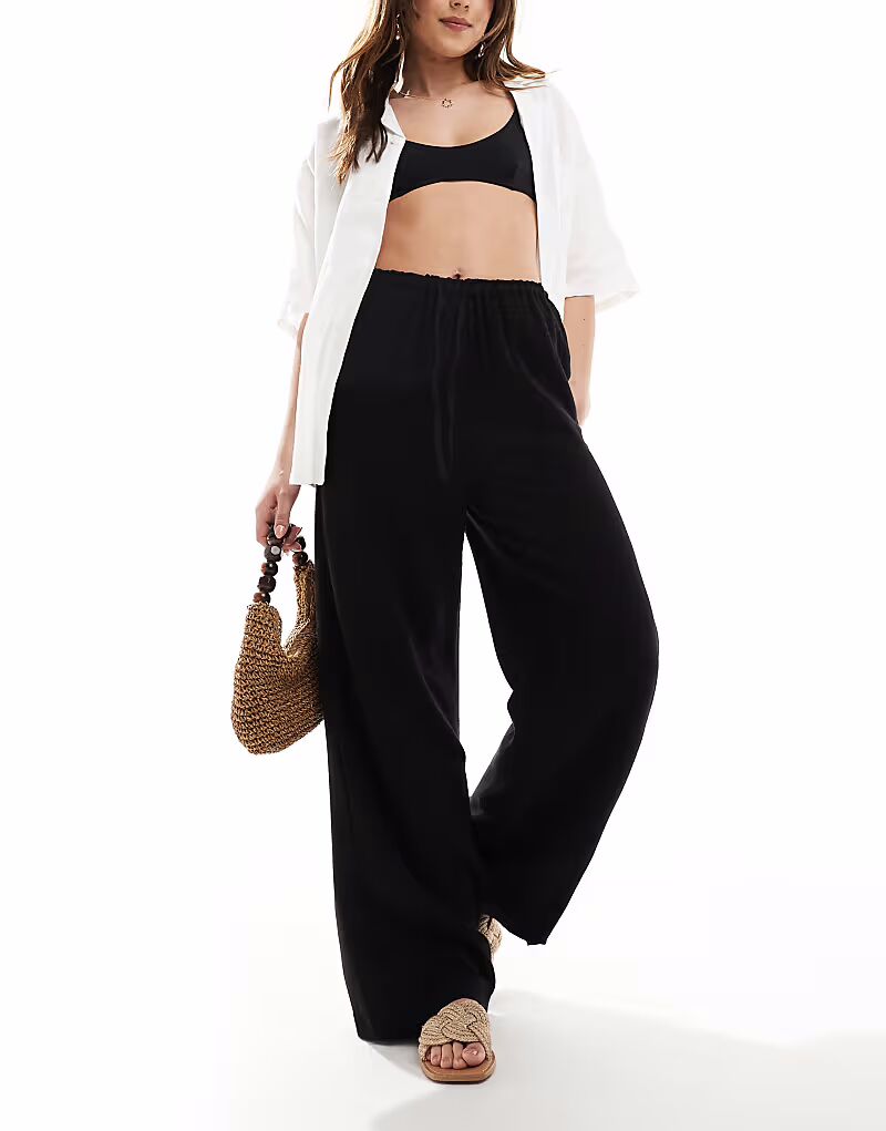Широкие брюки-бермуды New Look из льна черного цвета 5 681₽