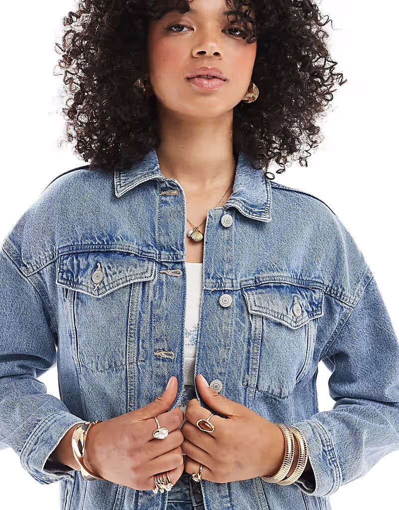 Джинсовая куртка New Look свободного кроя в средне-синем цвете