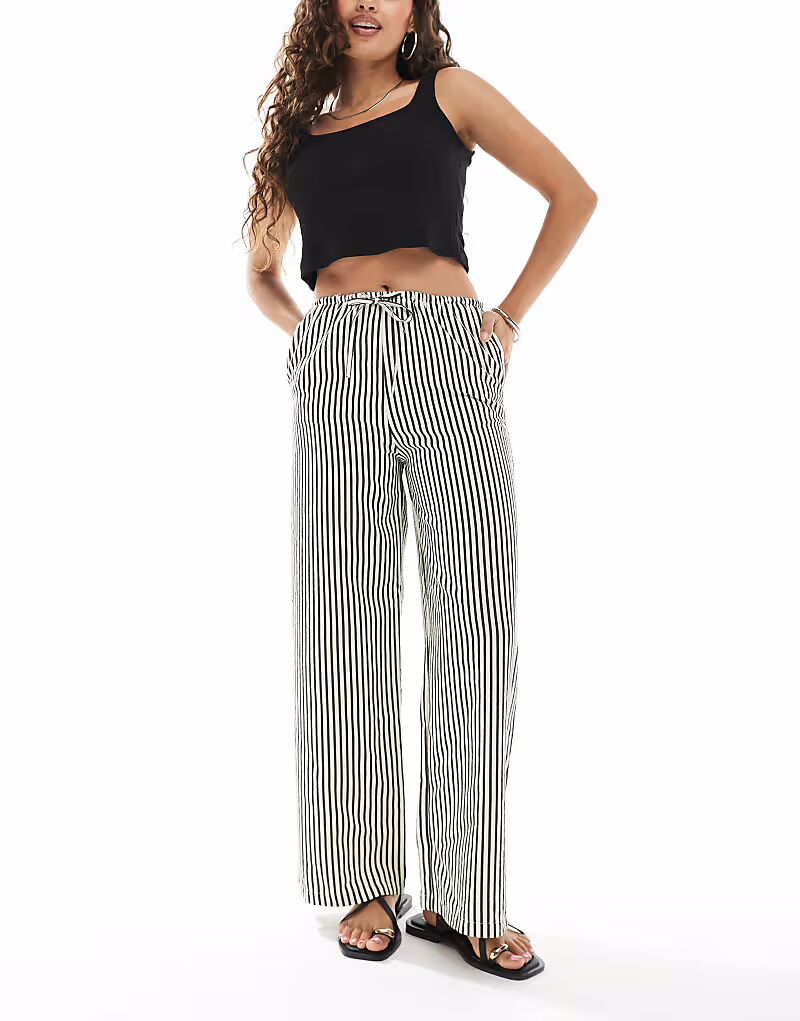 Широкие брюки New Look Petite в полоску черного цвета 5 414₽