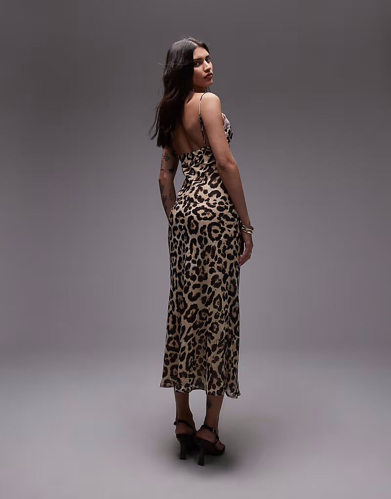 Платье мидакси Nia Jasmine с леопардовым принтом бежевого цвета