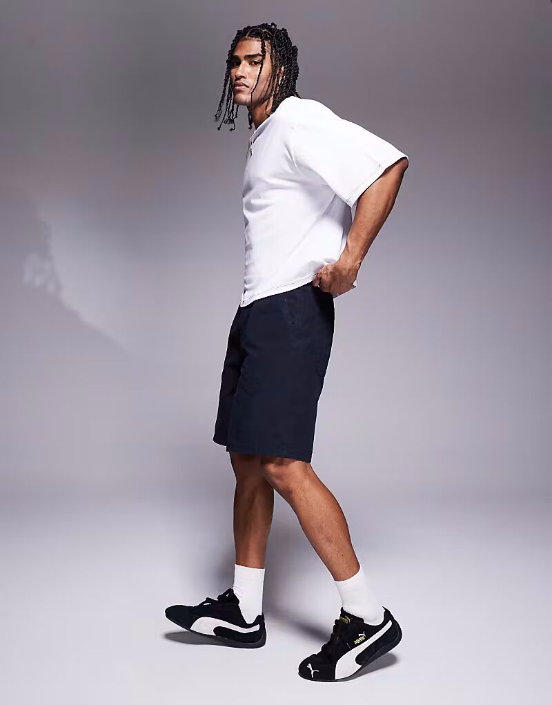 Шорты миди со складками ASOS DESIGN темно-синего цвета