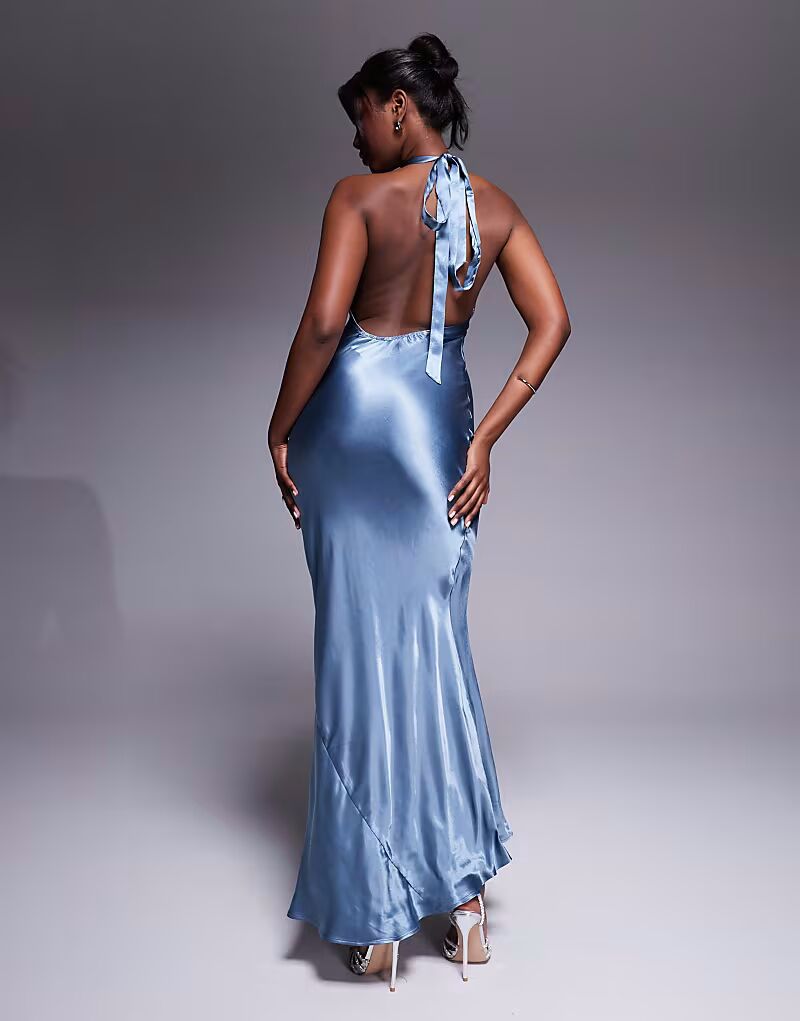 Платье макси River Island синего цвета с бретелью через шею
