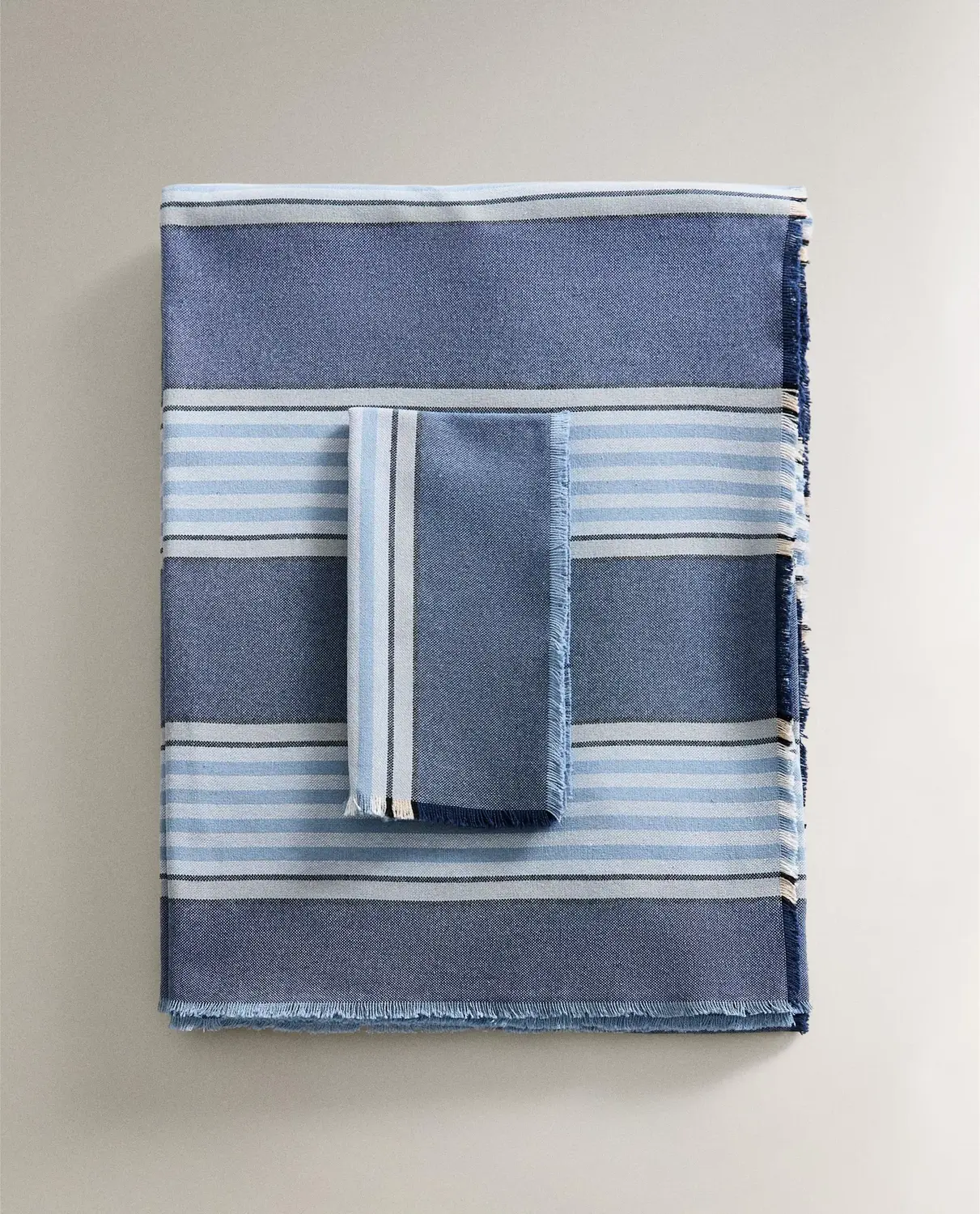 Хлопковая скатерть с рисунком в цветную полоску, выполненным окрашенными нитками.