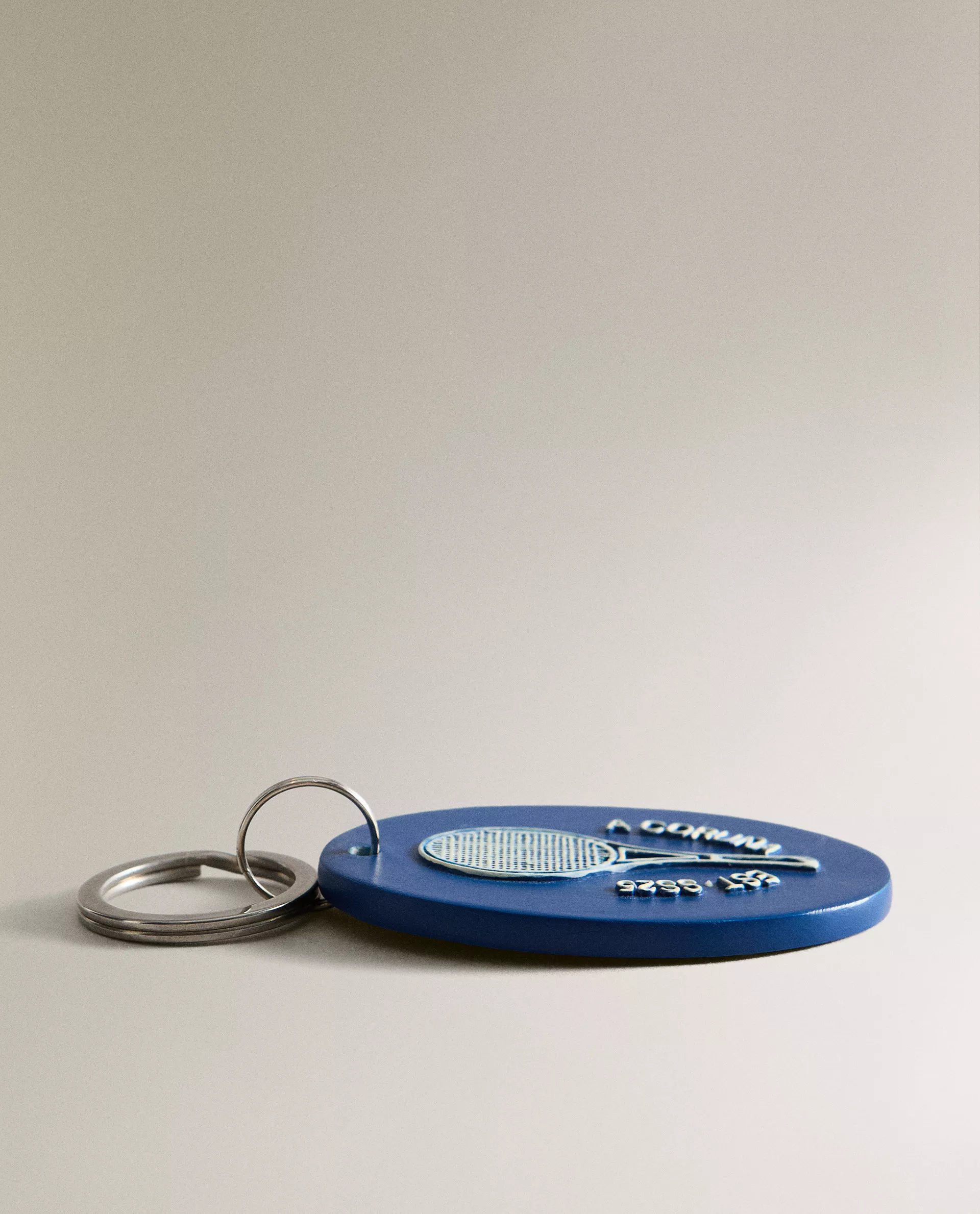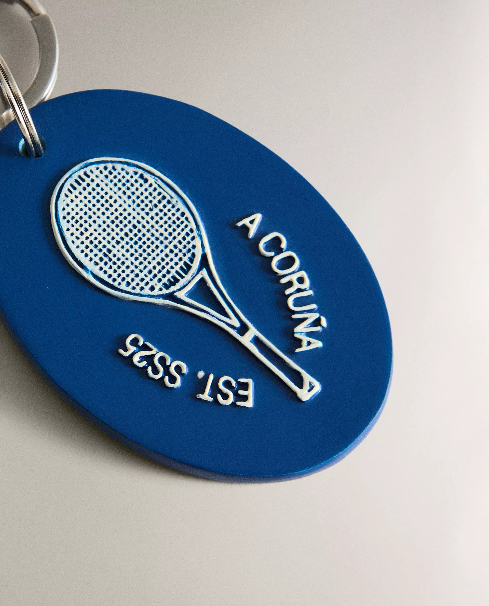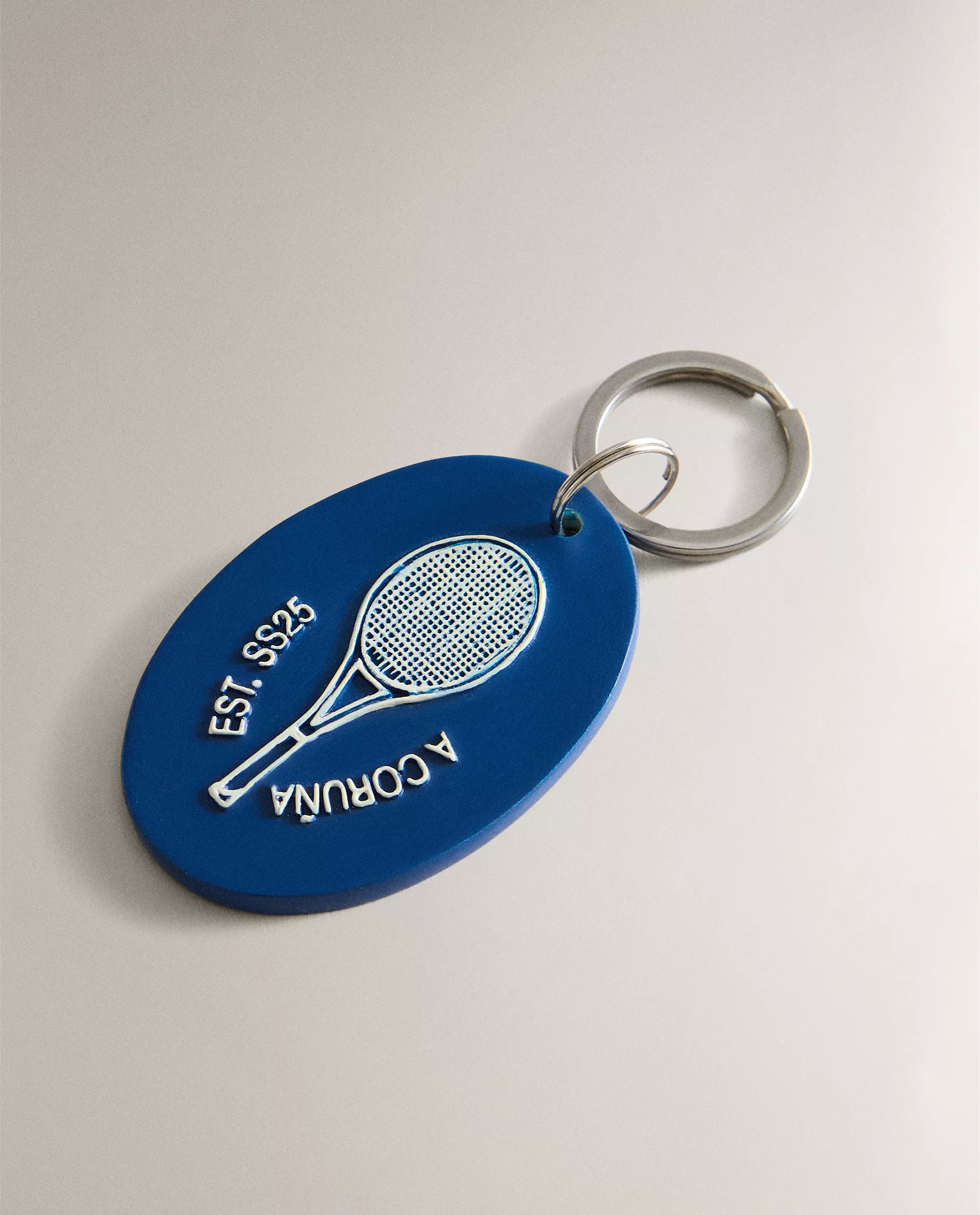 Брелок для ключей из смолы с дизайном в университетском стиле и отсылками к теннису.