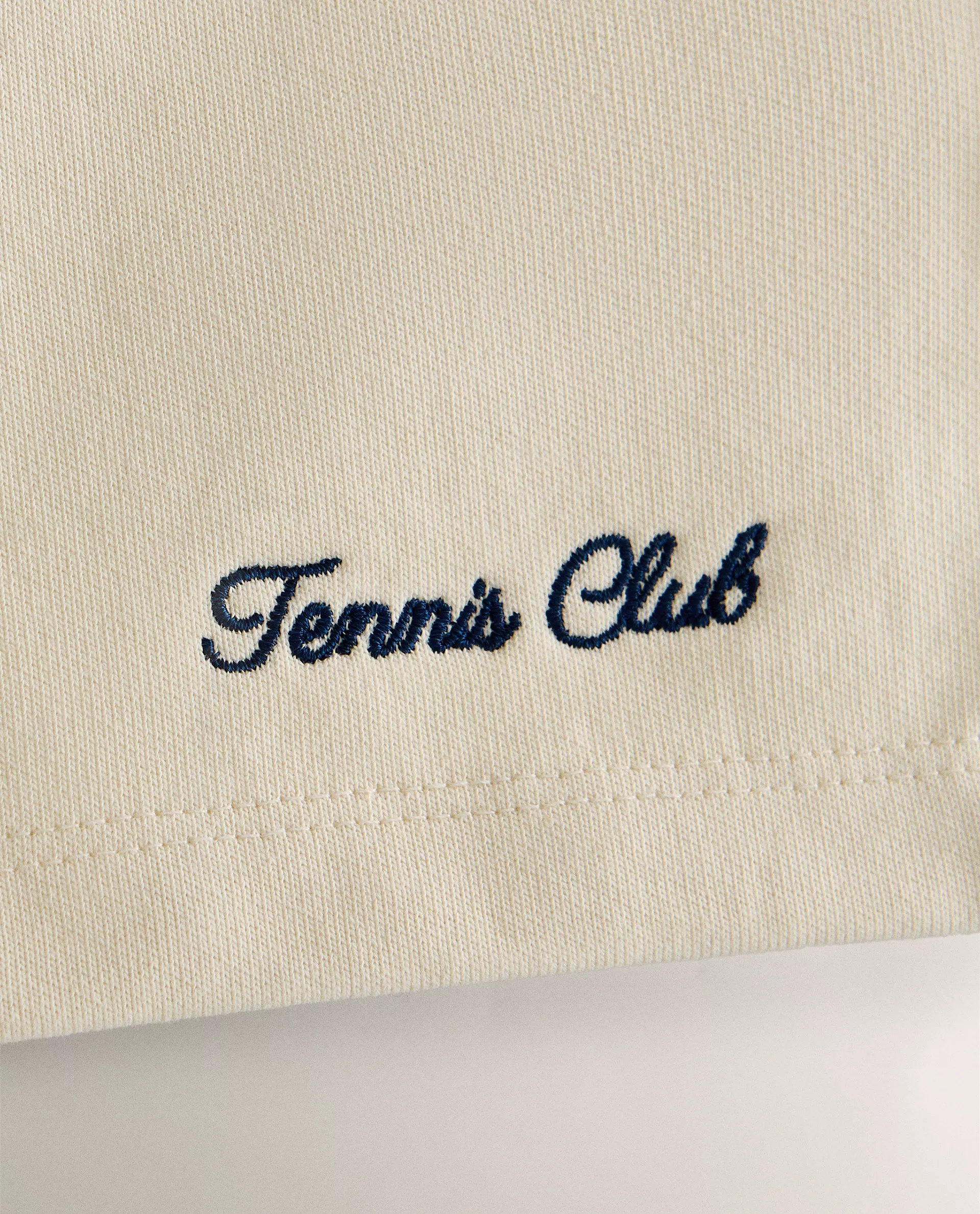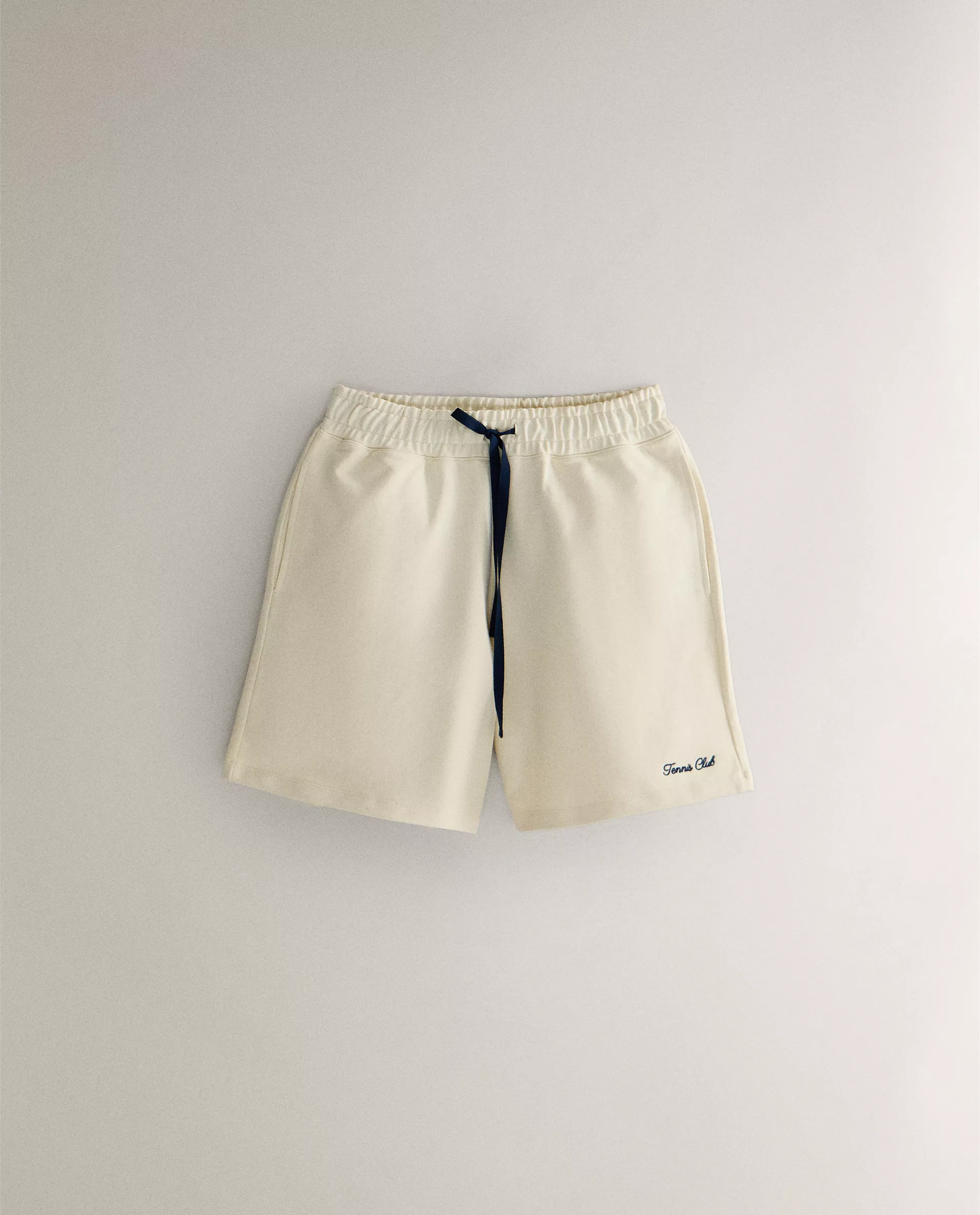 Простые хлопковые шорты-бермуды с эластичным поясом, контрастными регулируемыми шнурками и вышивкой в университетском стиле с отсылками к теннису.