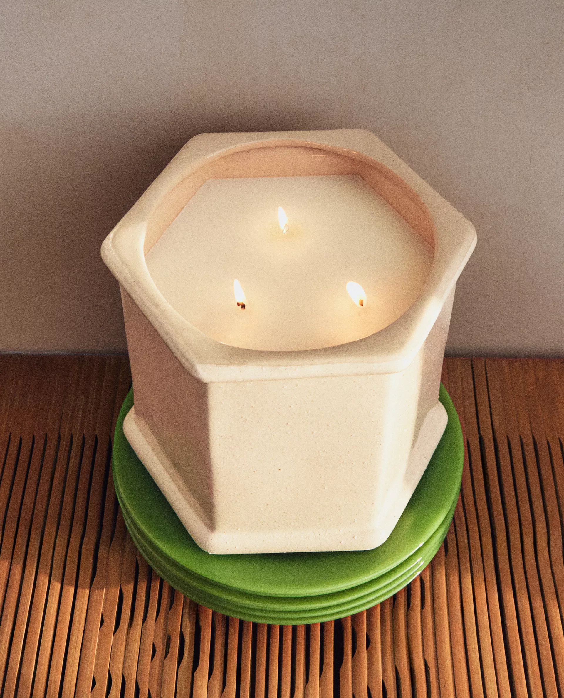 Свеча в шестиугольном керамическом подсвечнике. Приблизительная продолжительность: 60 часов.