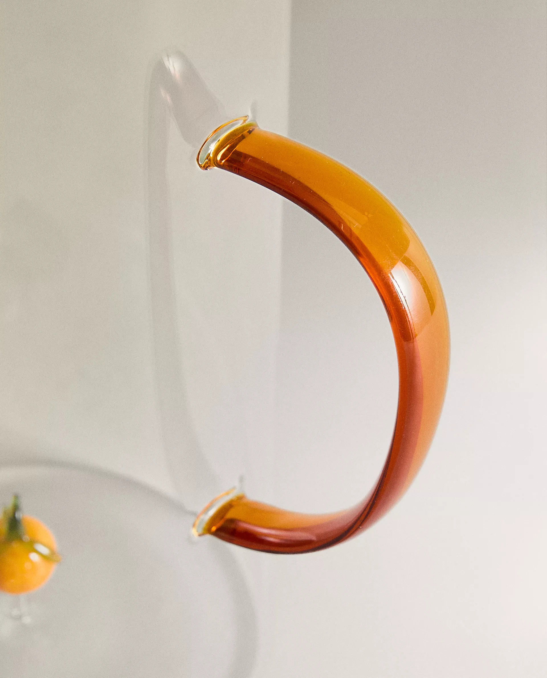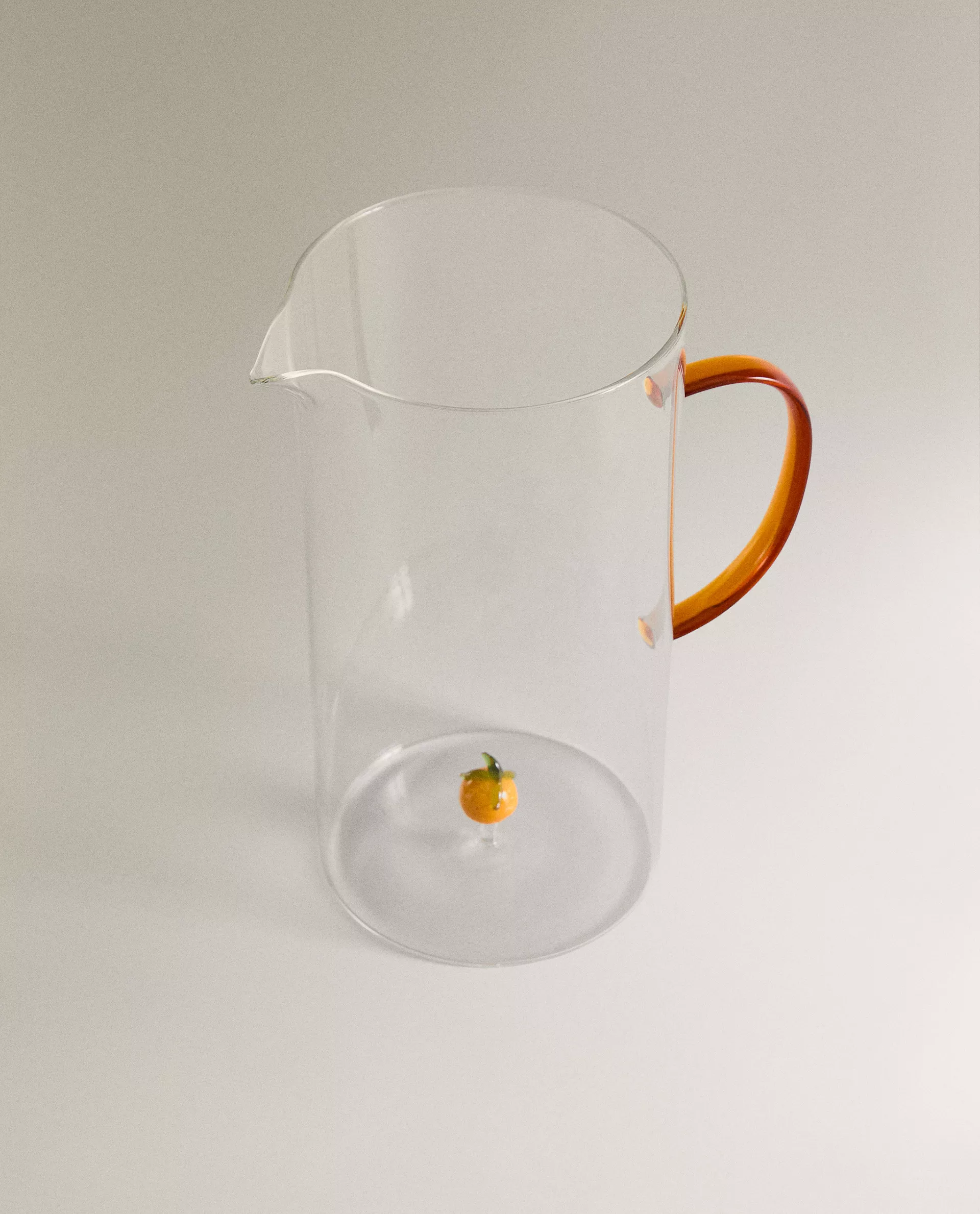 Стеклянный кувшин с контрастной ручкой и внутренней частью в форме апельсина.