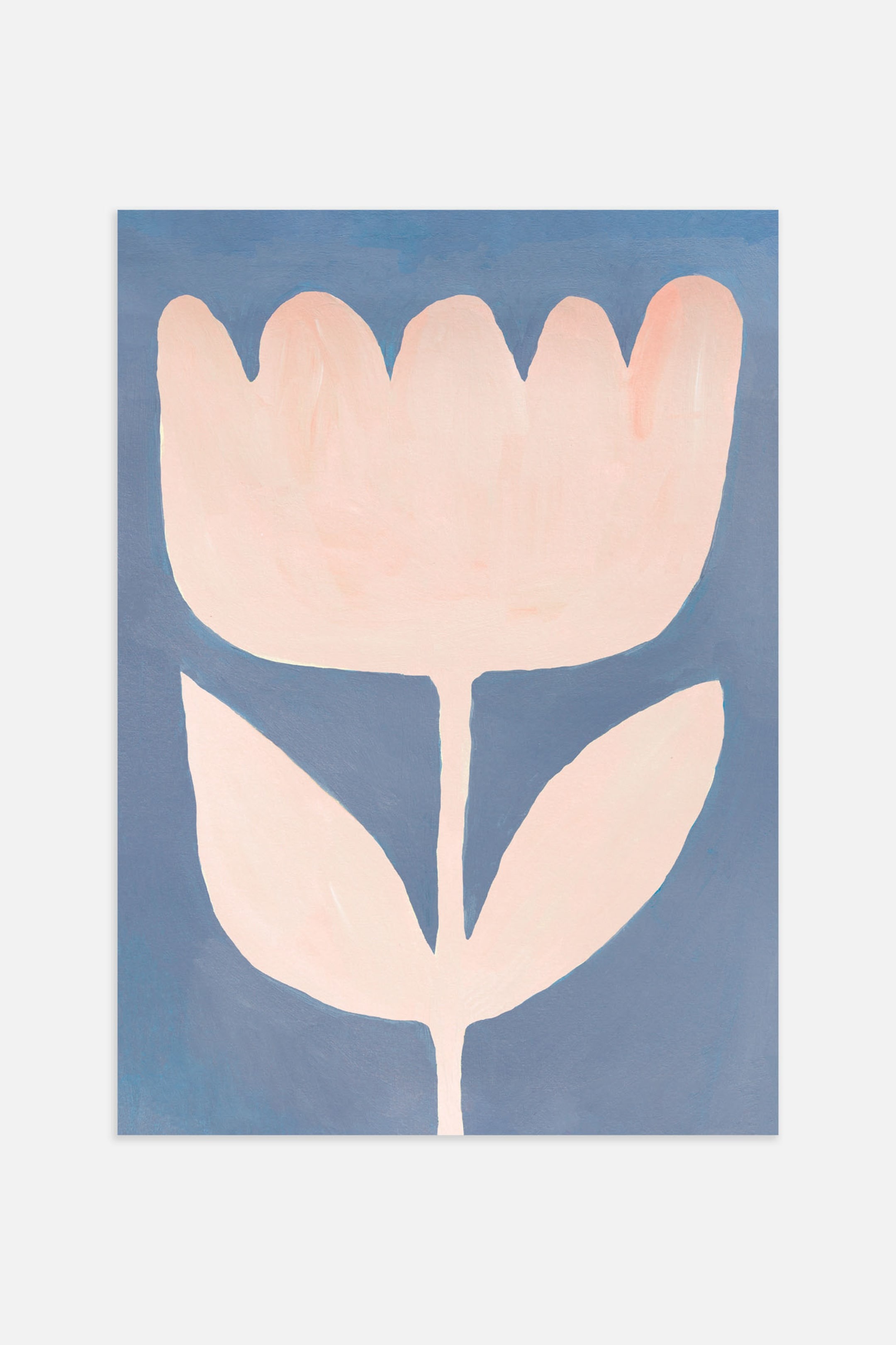 Нарисованный вручную мотив бежевого тюльпана на синем фоне. Мотив является частью коллекции Atelier No. 03, созданной нашими штатными дизайнерами для Postery Atelier.