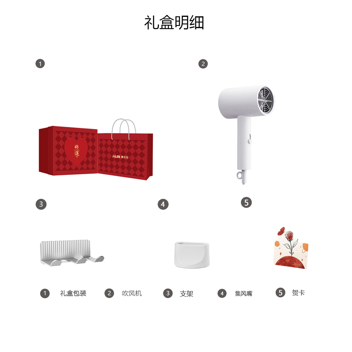 Фен для волос Aux, 7008 White-Negative Ion [Good Luck Accompaniment Box Limited Edition]