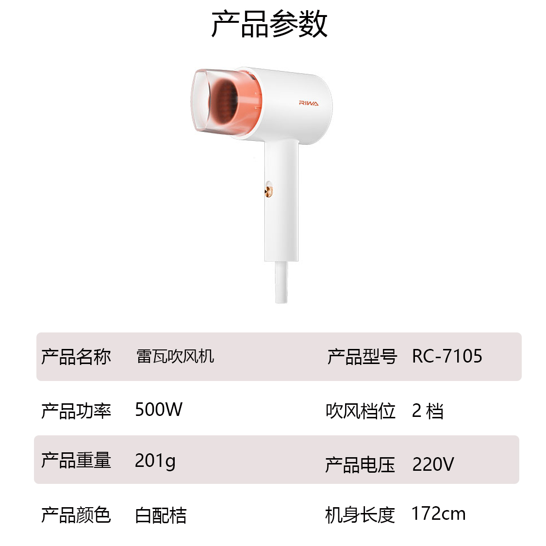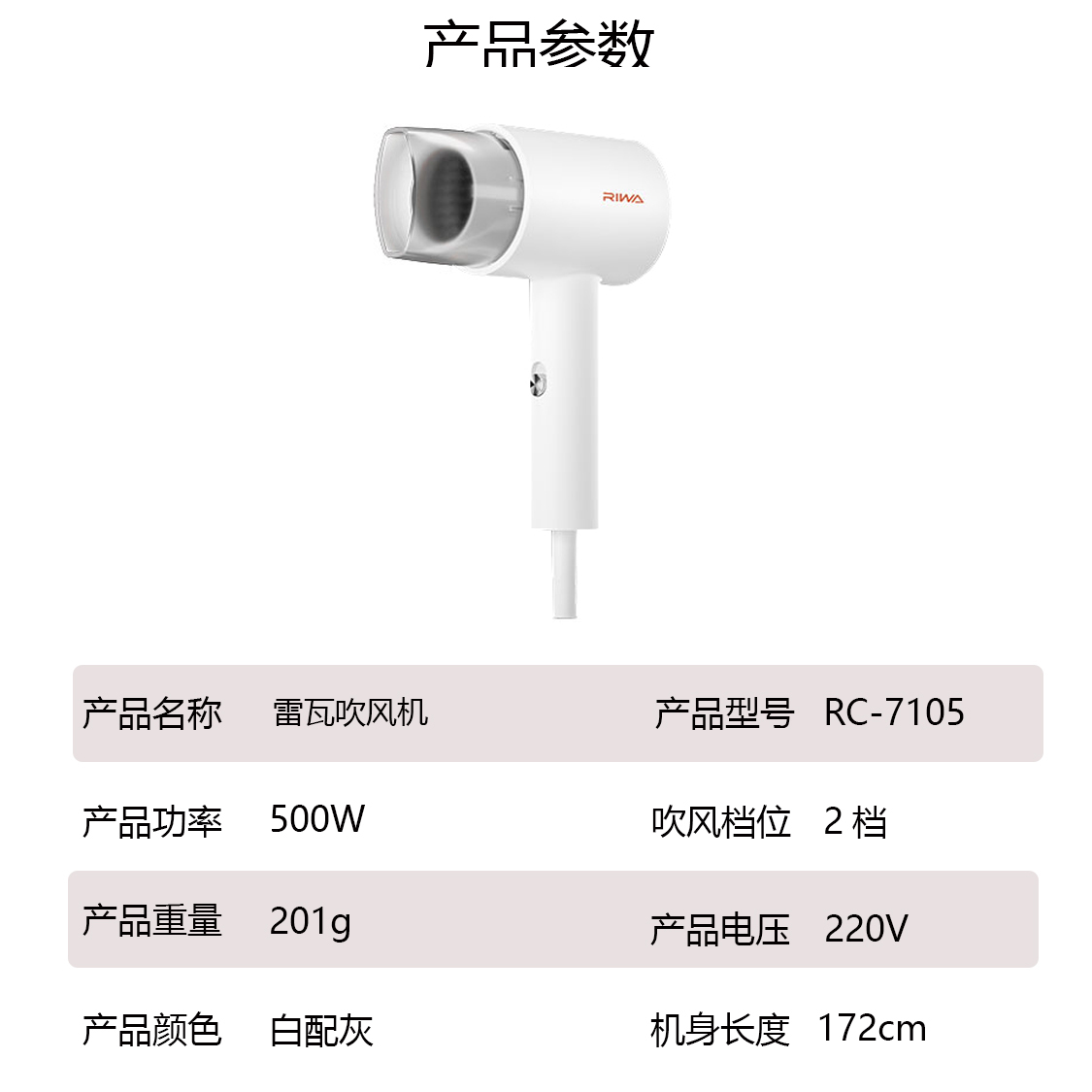 Фен для волос 500W с термостатом RC 7105 Riwa, White & Gray