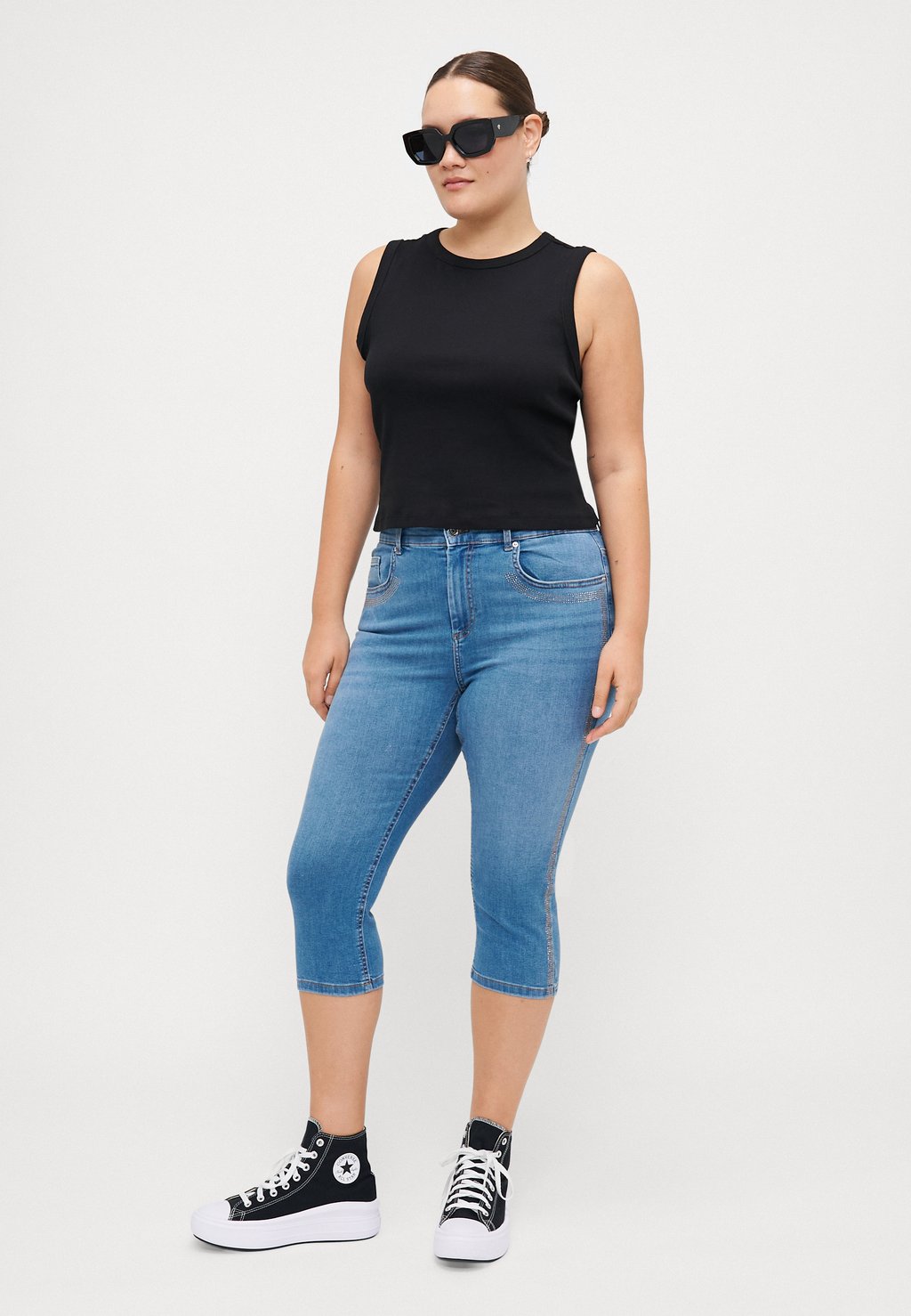 Джинсовые шорты CARWILLY RHINESTONE CAPRI ONLY Carmakoma, цвет Medium Blue Denim