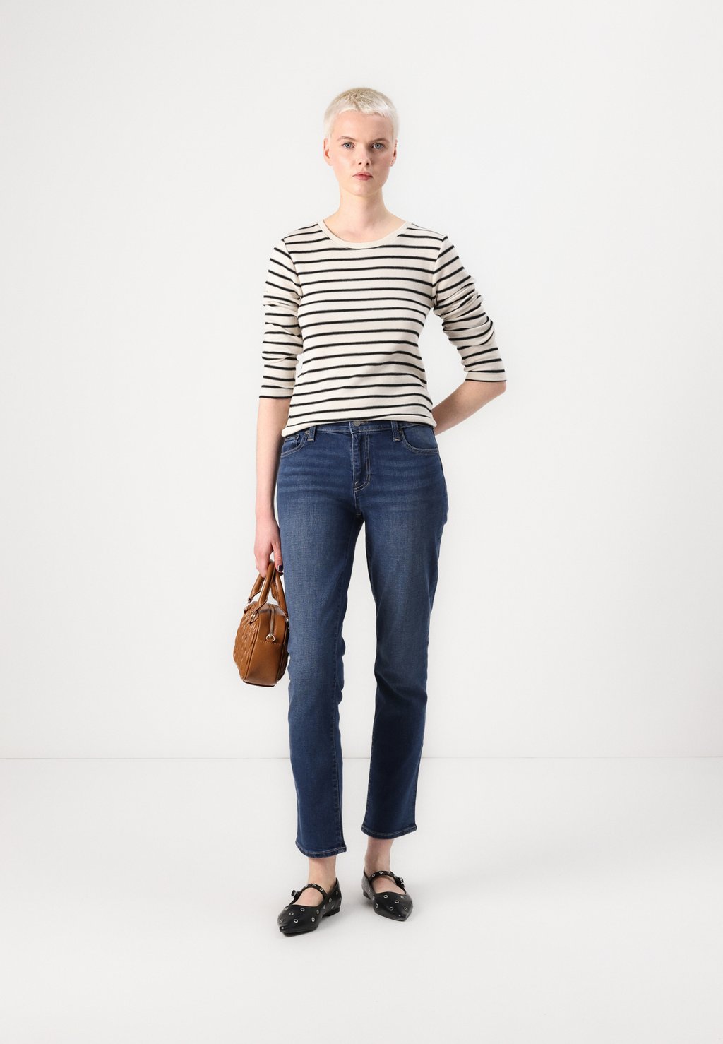 Рост нашей модели: 180 см, размер ее одежды 27xR.