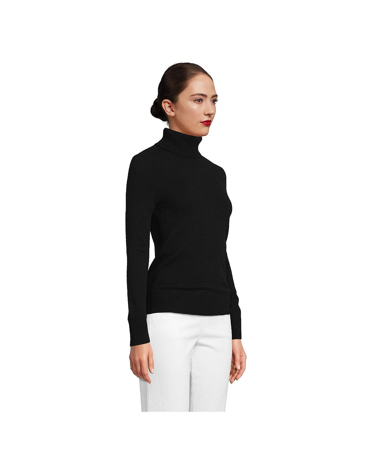Женский кашемировый свитер с высоким воротником Lands' End, черный