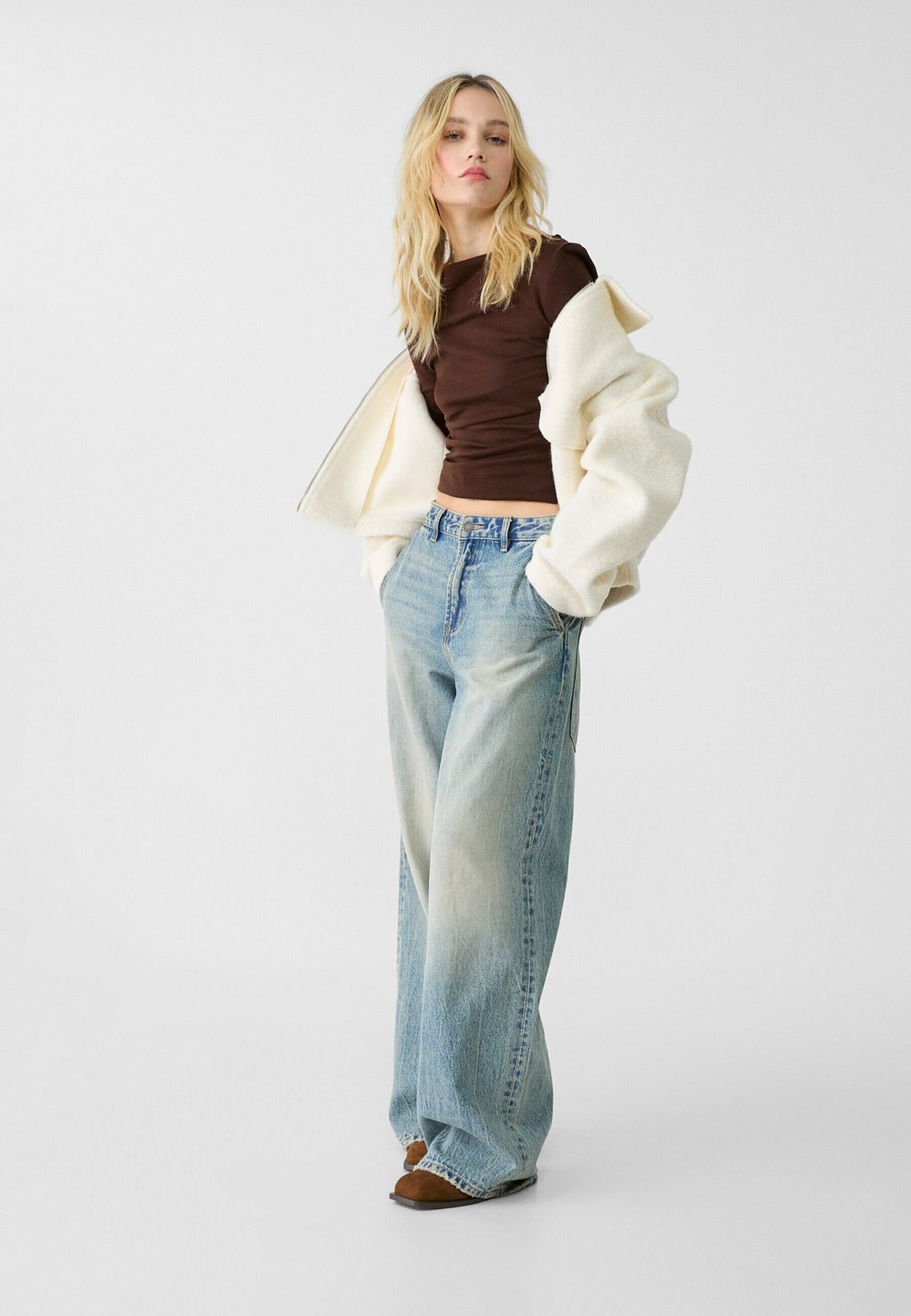 Топ с длинными рукавами WITH GATHERING Stradivarius, темно-коричневый
