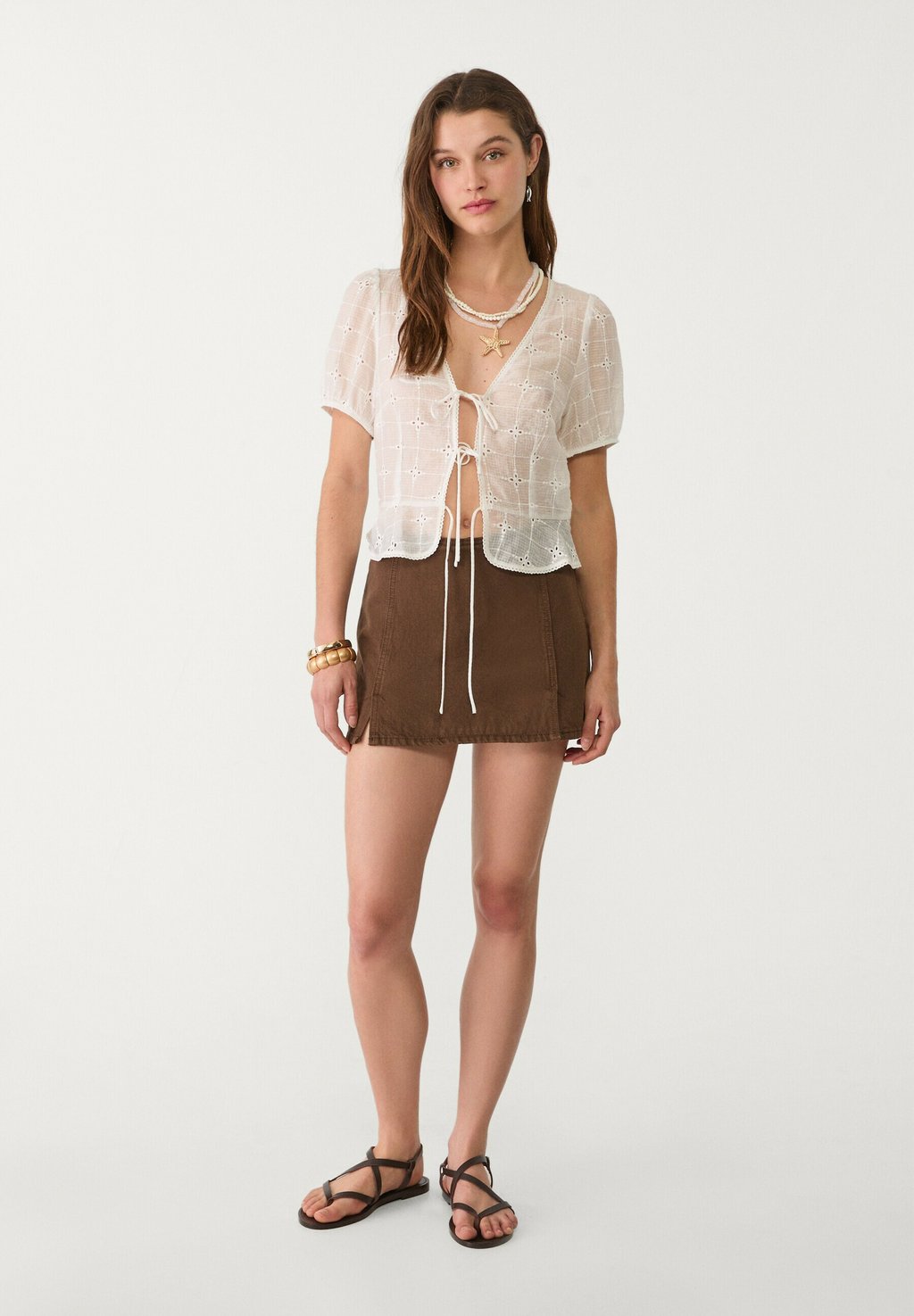 Мини-юбка Denim skirt Stradivarius, темно-коричневый 4 546₽