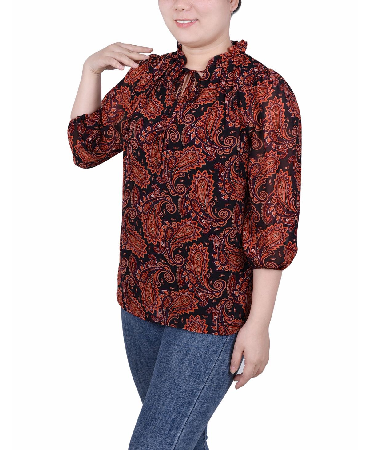 Шифоновая блузка Petite с рукавами 3/4 NY Collection