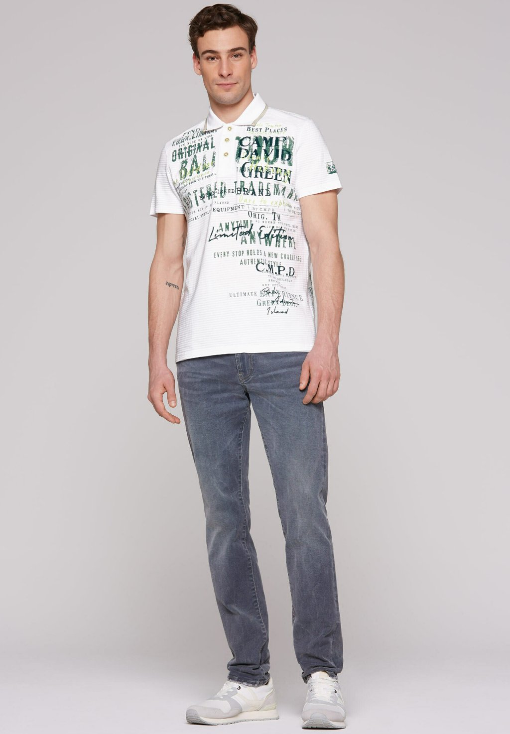 Рубашка поло GESTREIFTES MIT PRINTS UND STICKEREIEN Camp David, белый