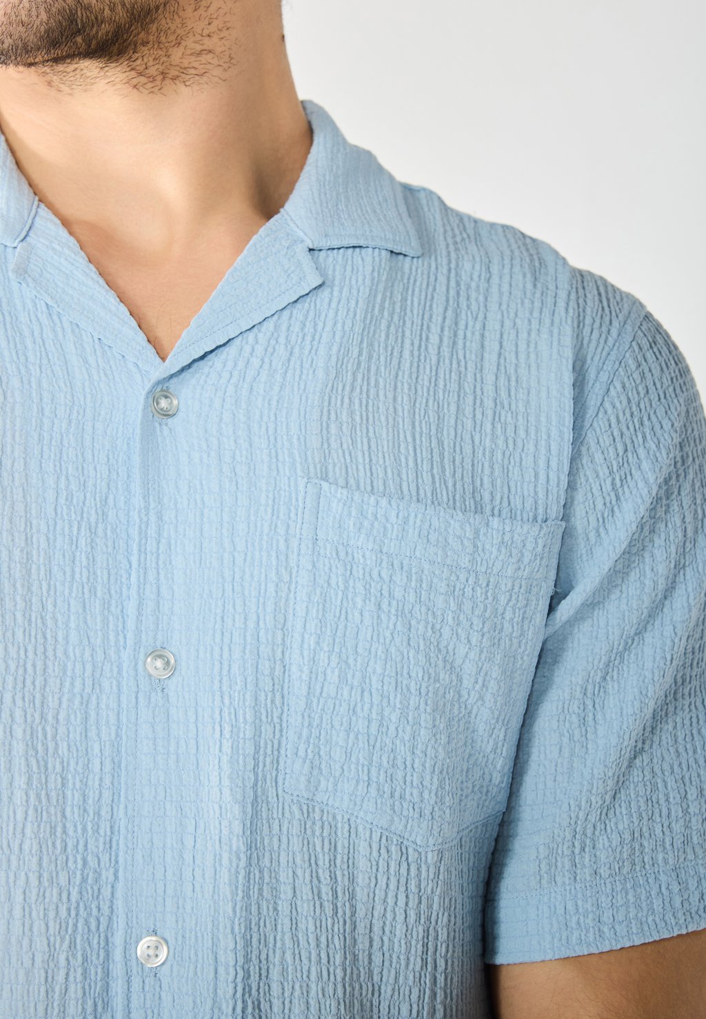 Рубашка TEXTURED SHORT SLEEVE Pier One by Zalando, светло-голубой