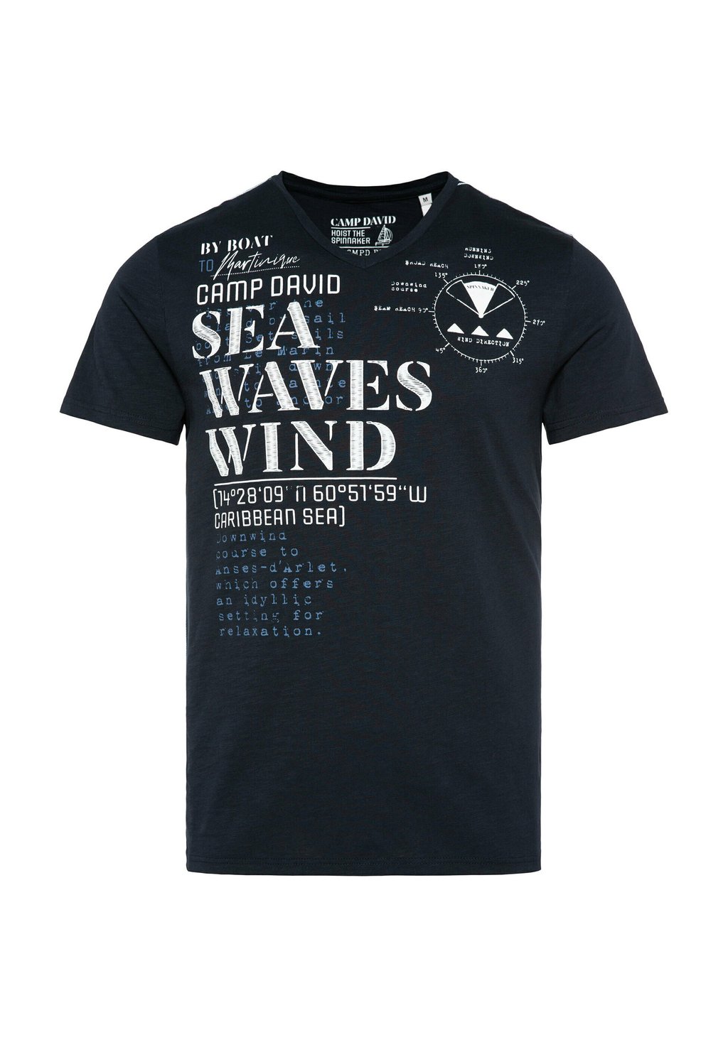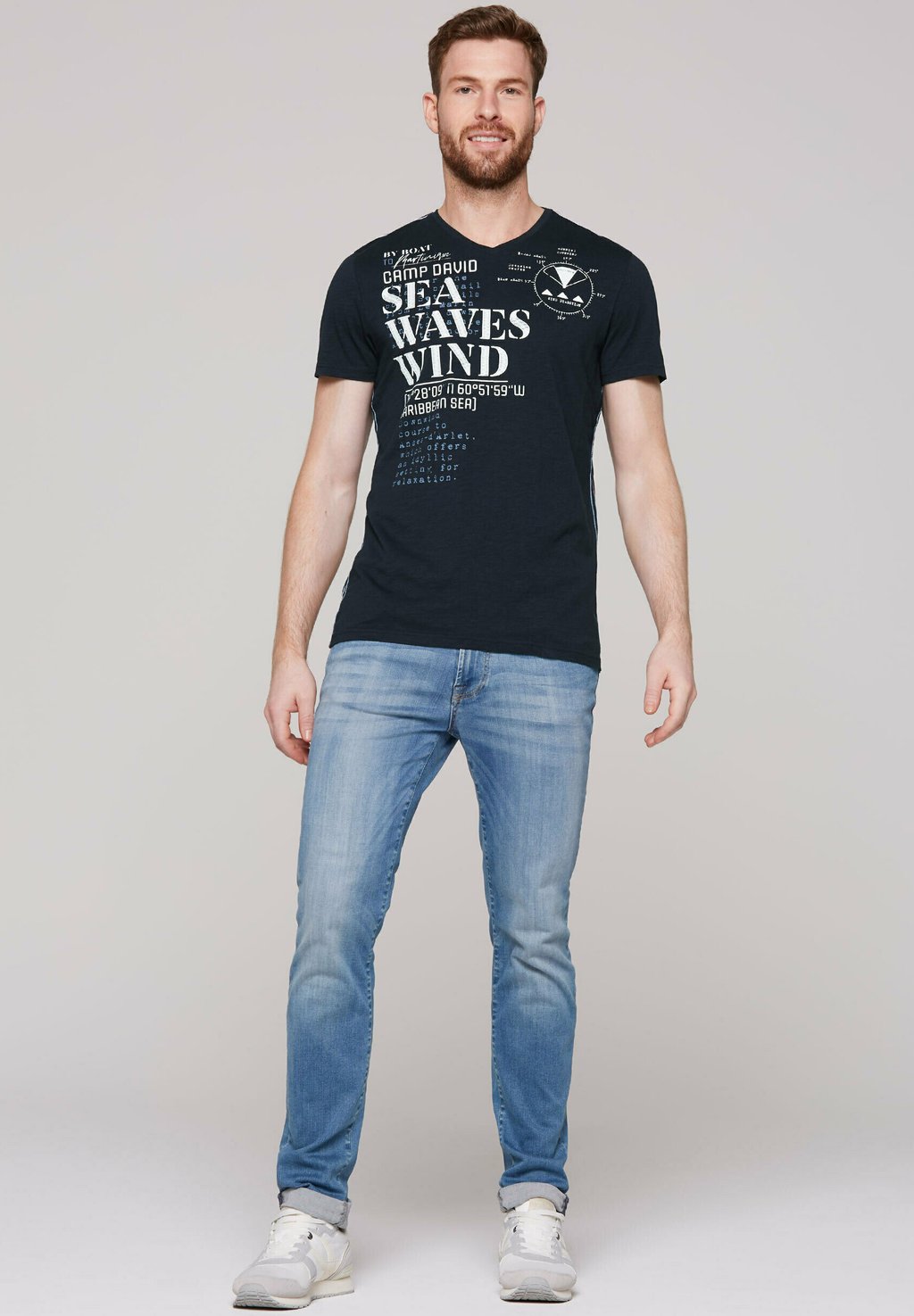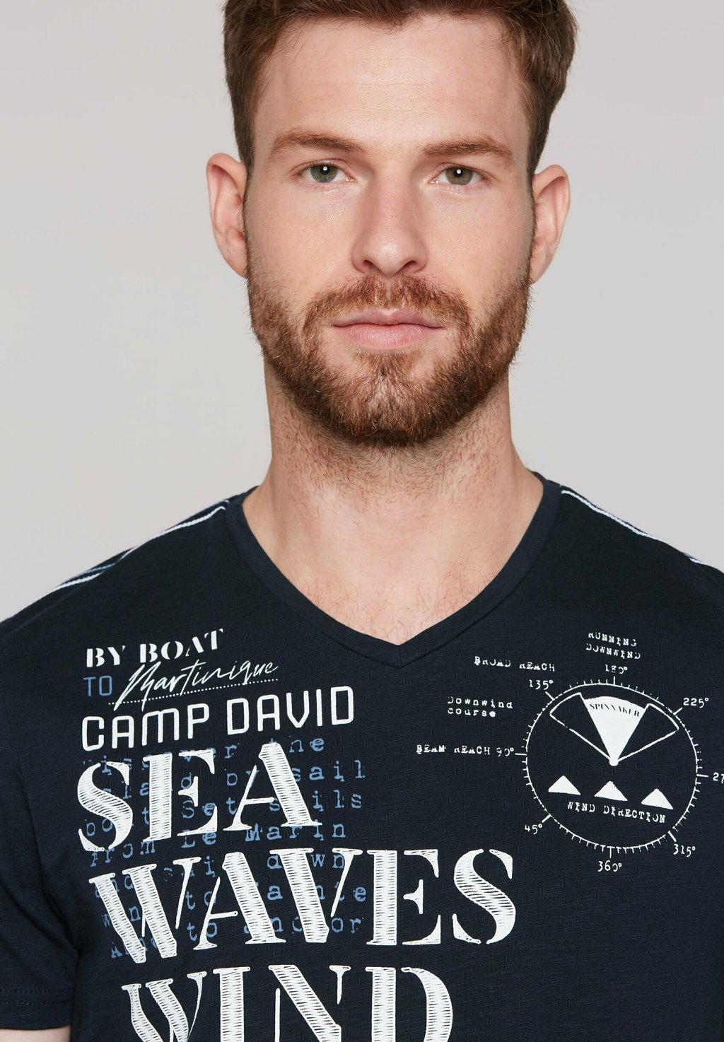 Футболка с принтом V-NECK UND WORDING Camp David, темно-синий