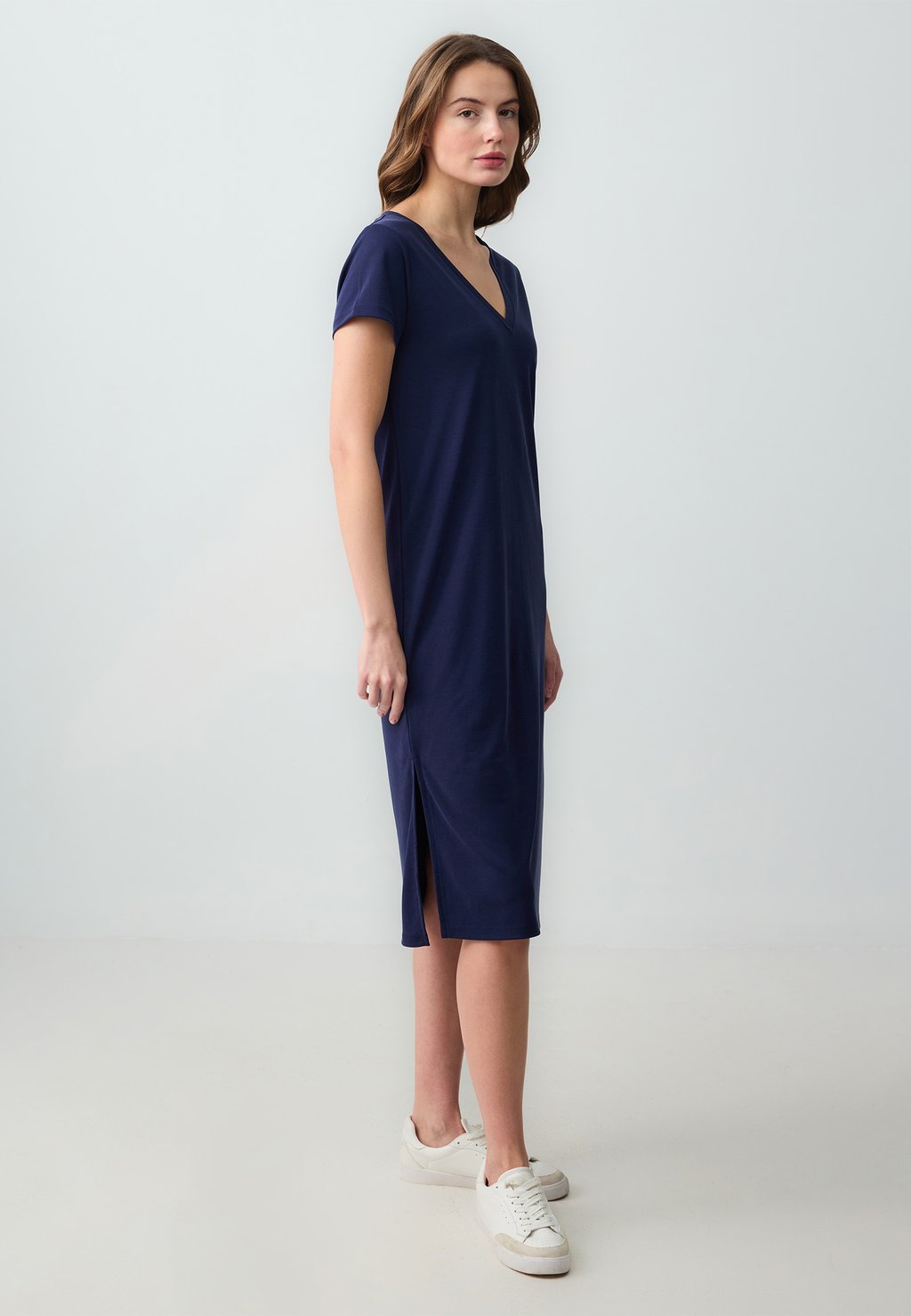 Вязаное платье REGULAR FIT V NECK SHORT SLEEVE Jimmy Key, темно-синий