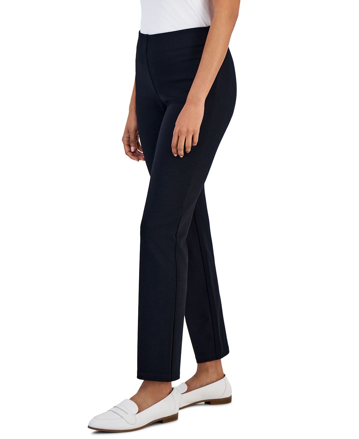 Гладкая и изящная линия талии подчеркивает удобный дизайн этих универсальных брюк до щиколотки из коллекции JM, выполненных из ткани понте.
