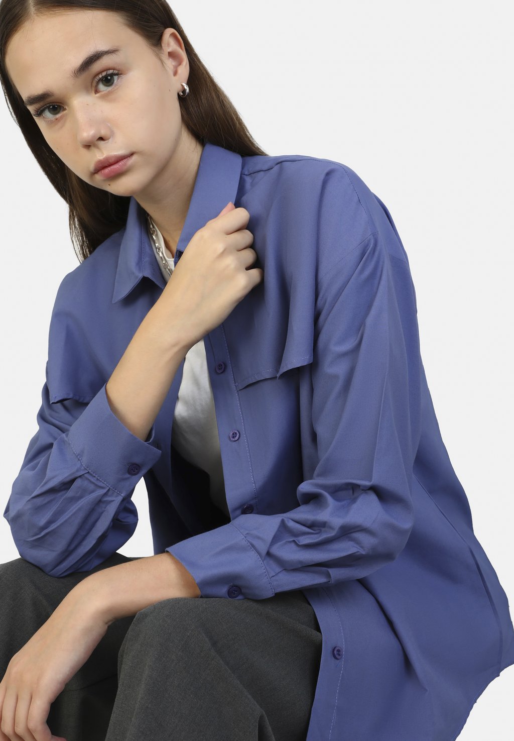 Блузка на пуговицах BENIN Modanisa, синий 4 659₽