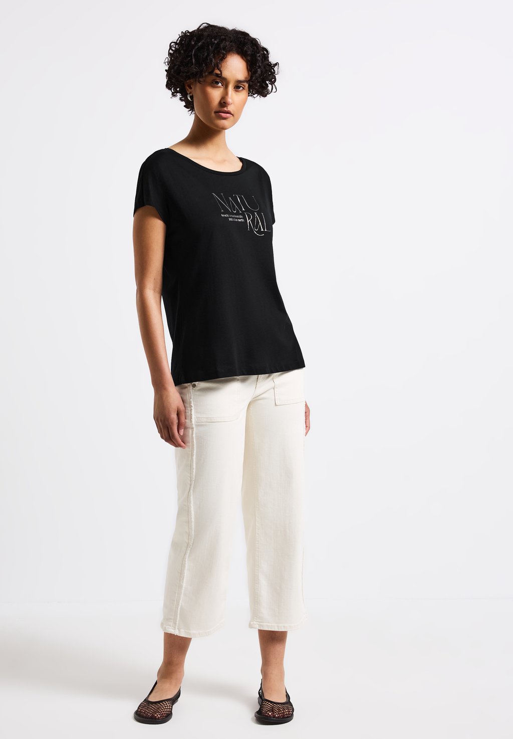 Футболка с принтом MIT GLITZER-WORDING Street One, черный