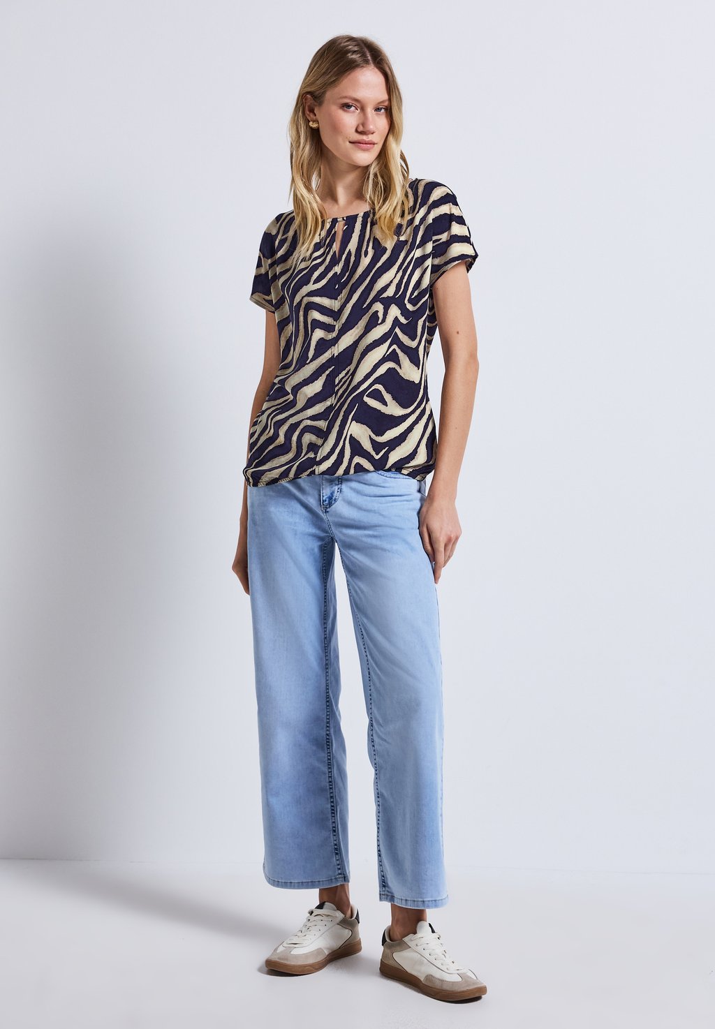 Блуза PRINT MIT CUT OUT Street One, темно-синий