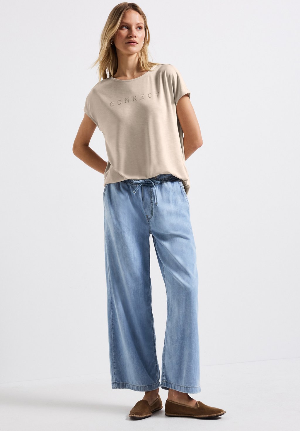 Футболка с принтом LOOK MIT WORDING Street One, бежевый