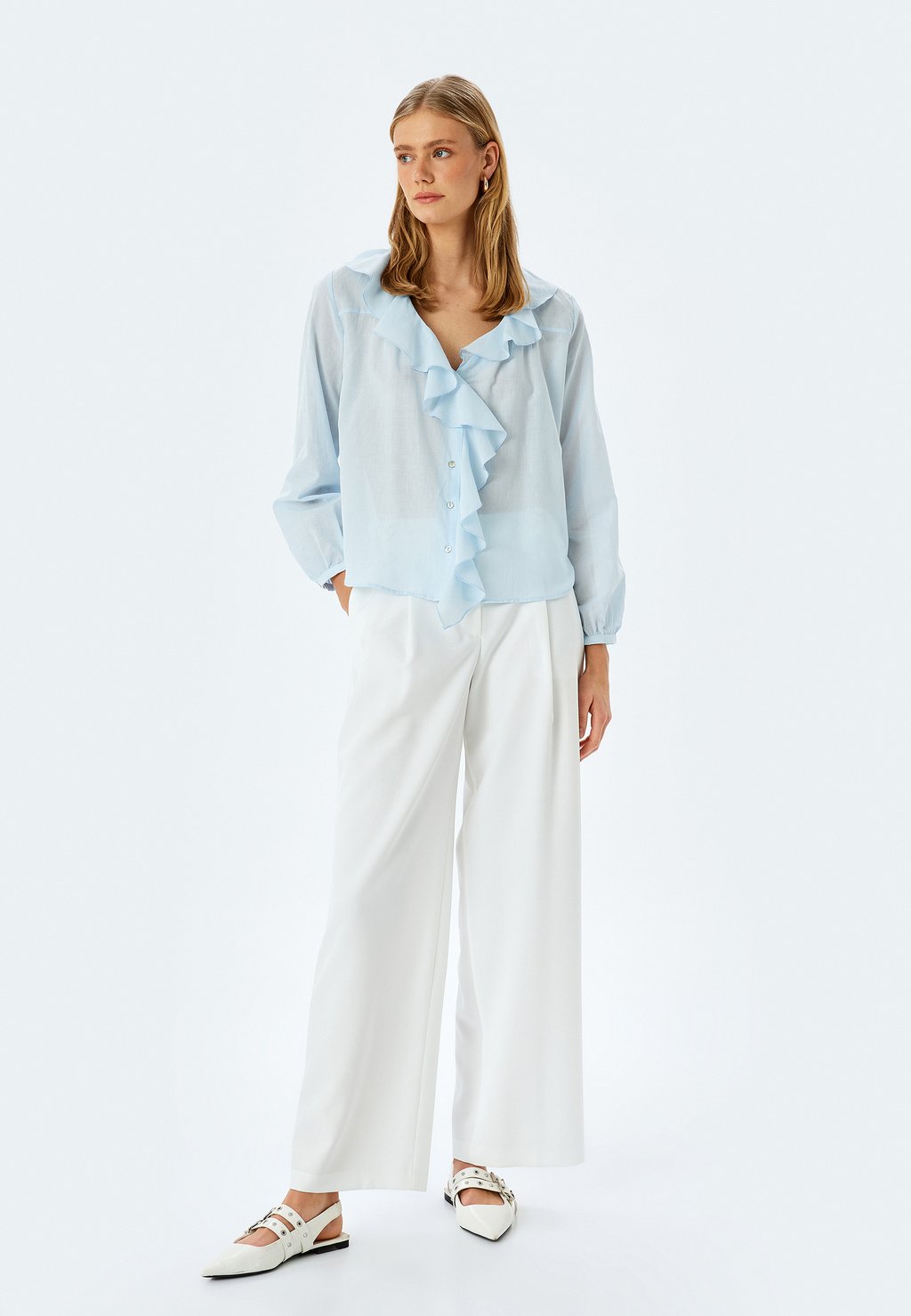 Блузка на пуговицах RUFFLE Koton, светло-голубой