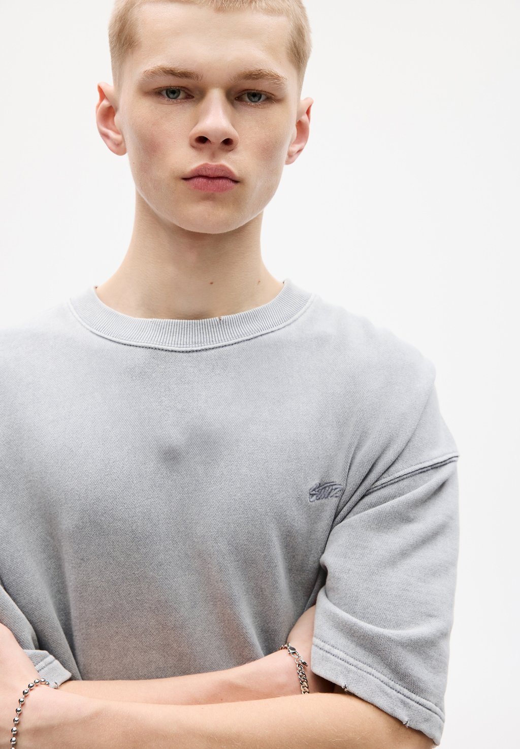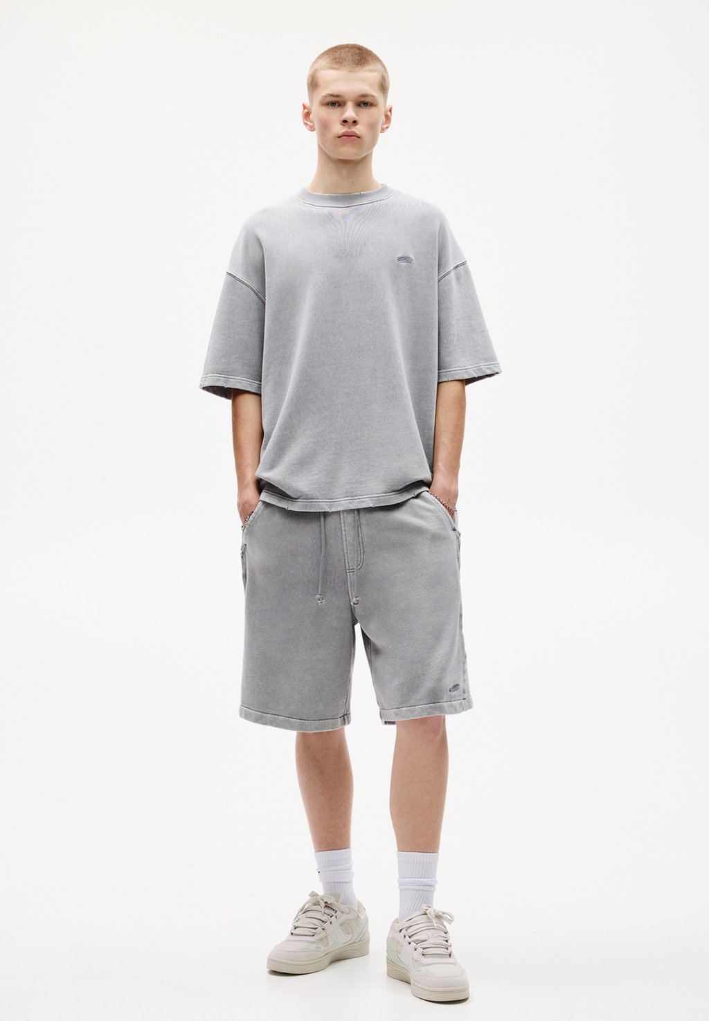 Базовая футболка SHORT SLEEVE PULL&BEAR, серый 3 100₽