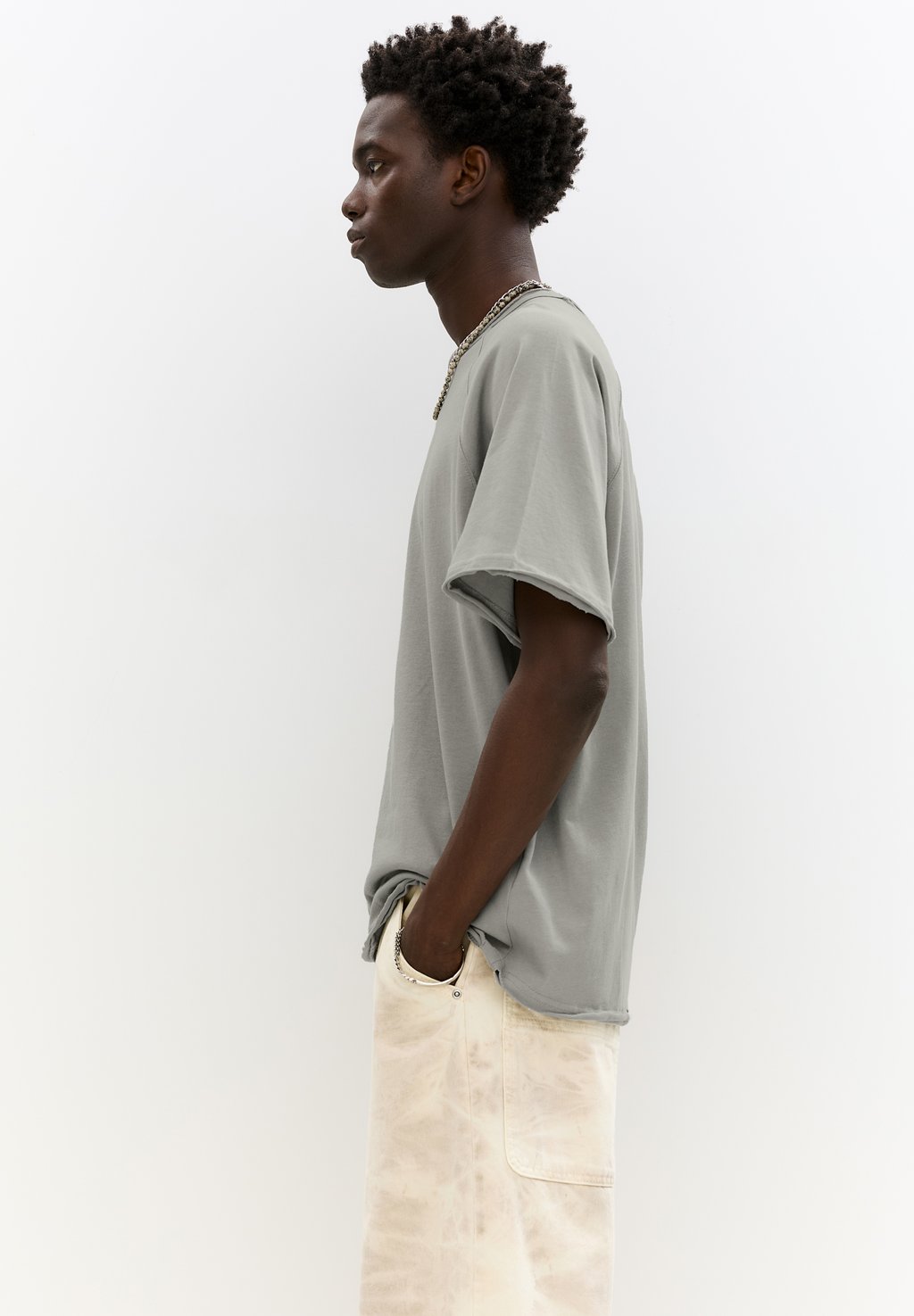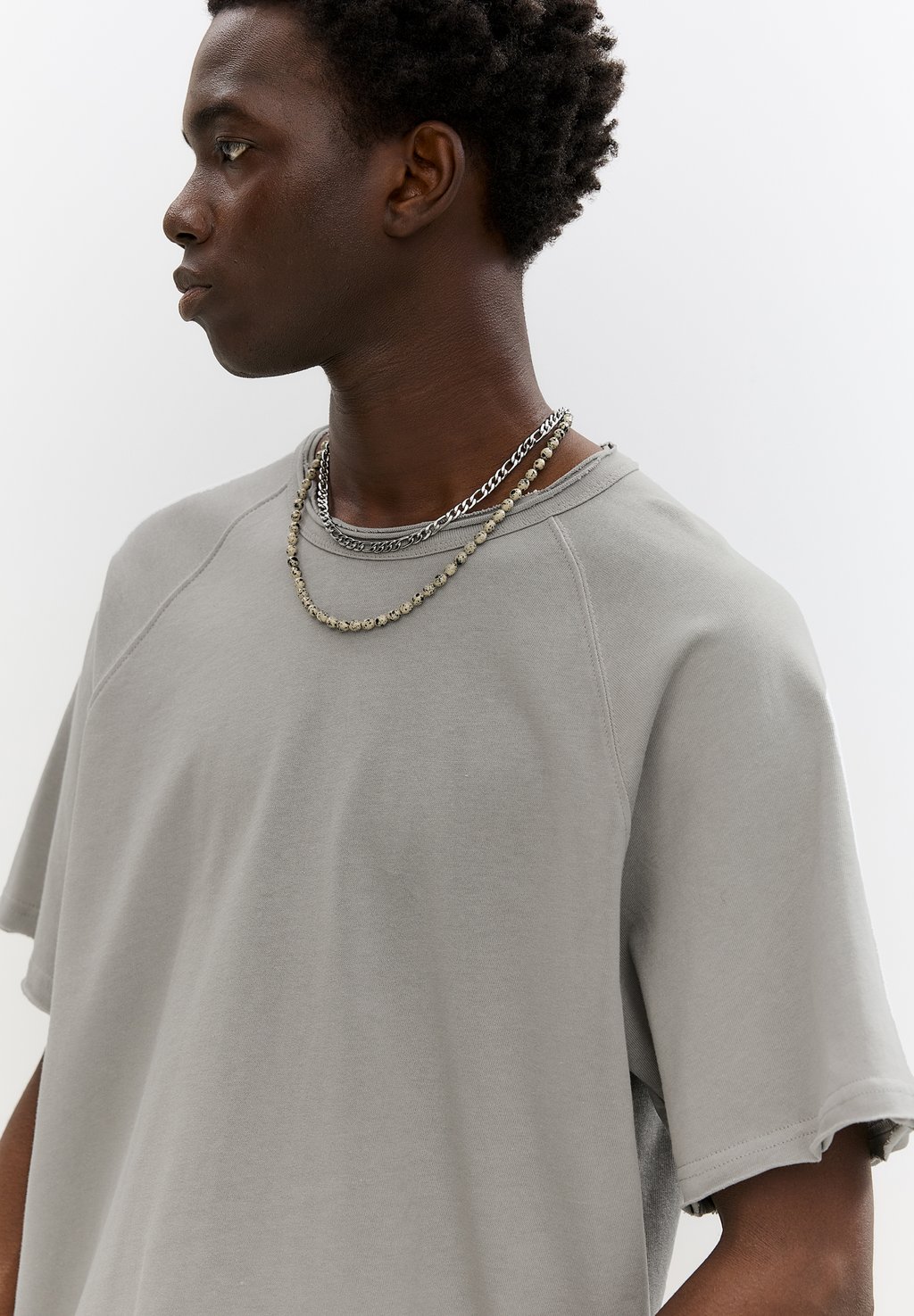 Базовая футболка SHORT SLEEVE TRIMMED PULL&BEAR, серый