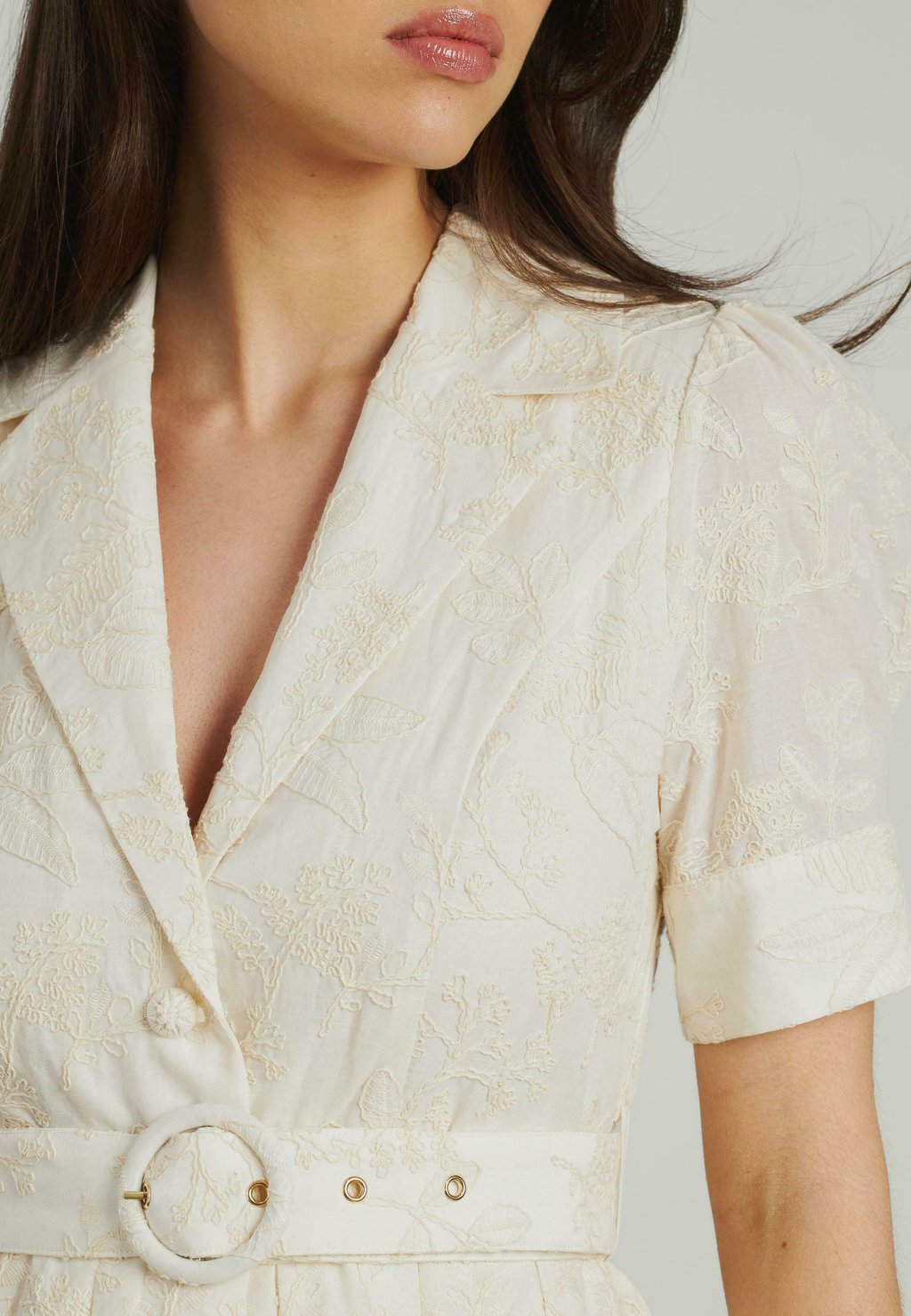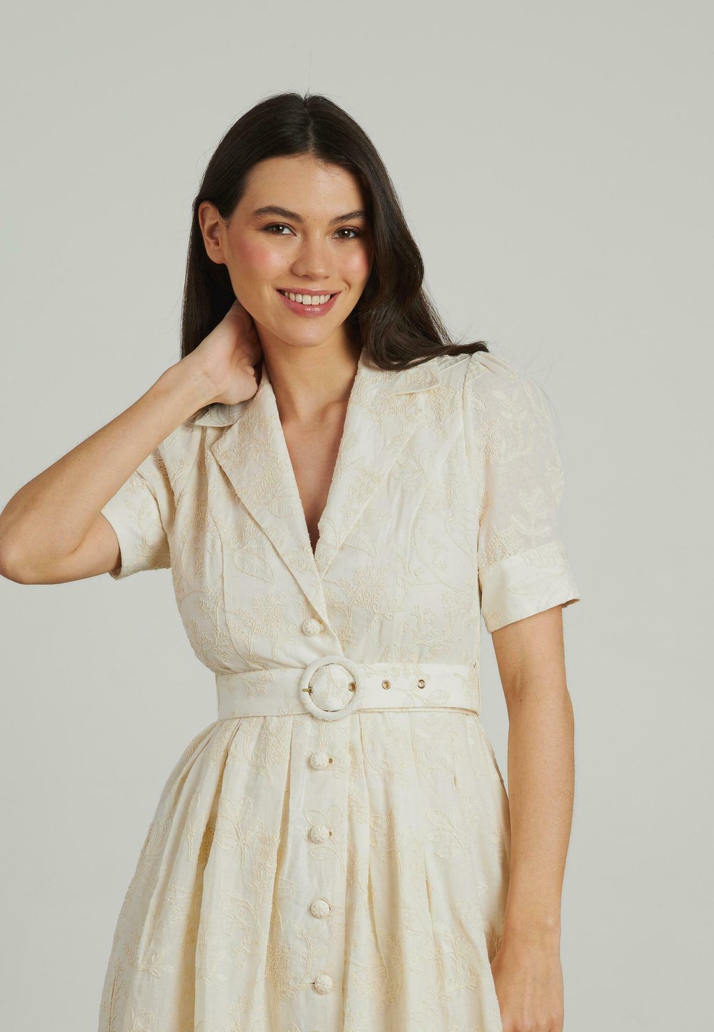 Платье-рубашка MIDI BORDADO CINTURÓN Alma en Pena, белый