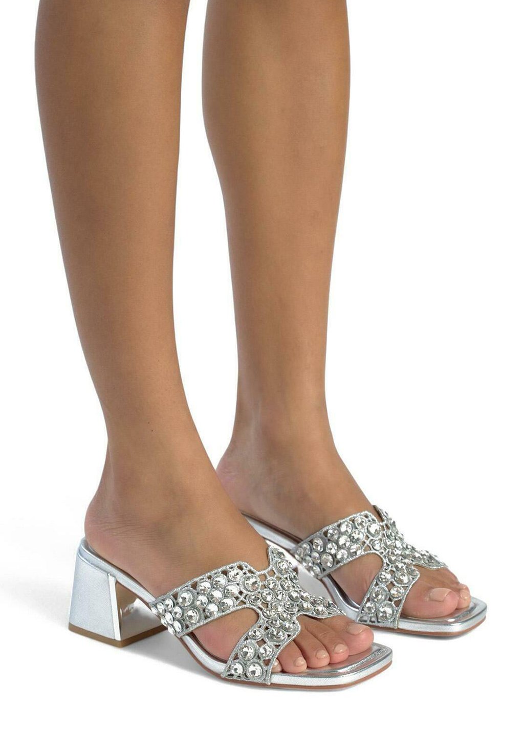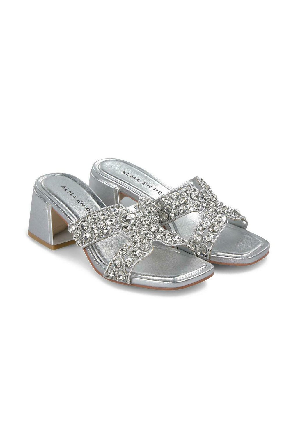 Мюли на каблуке Alma en Pena, серебряный