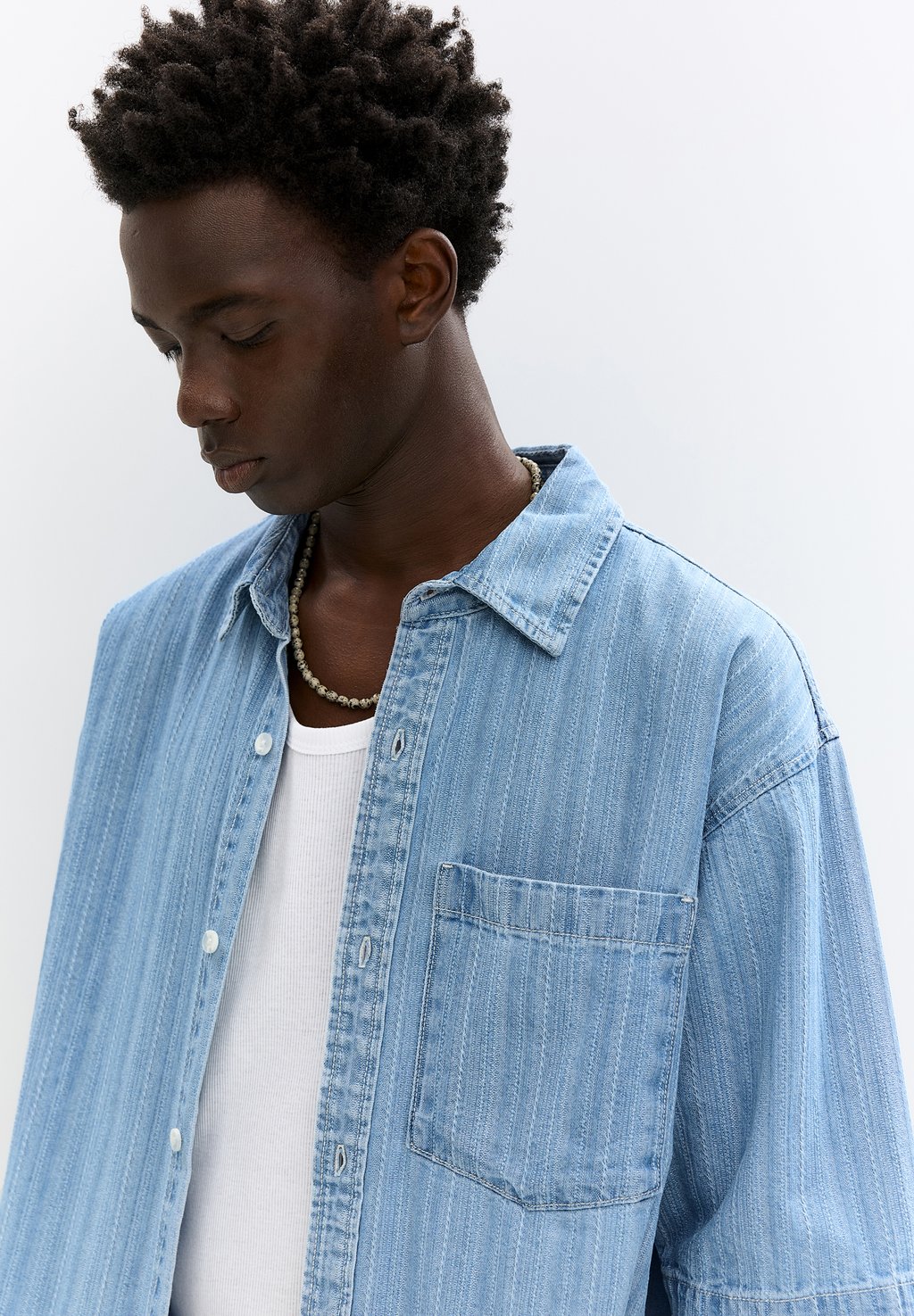 Рубашка SHORT SLEEVE PULL&BEAR, цвет Blue Denim