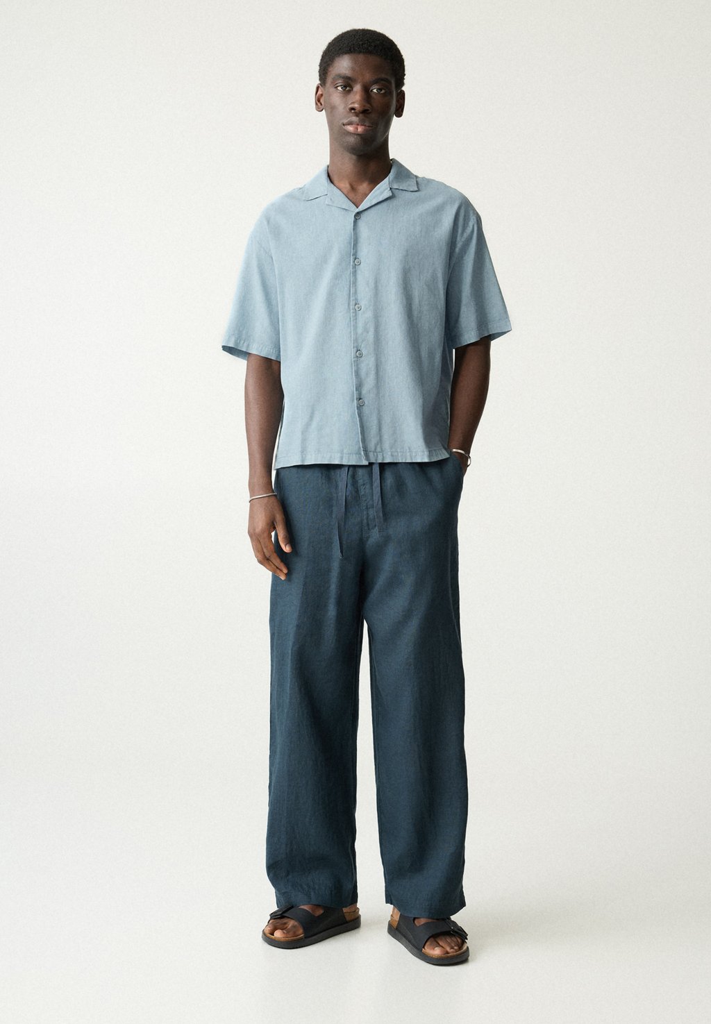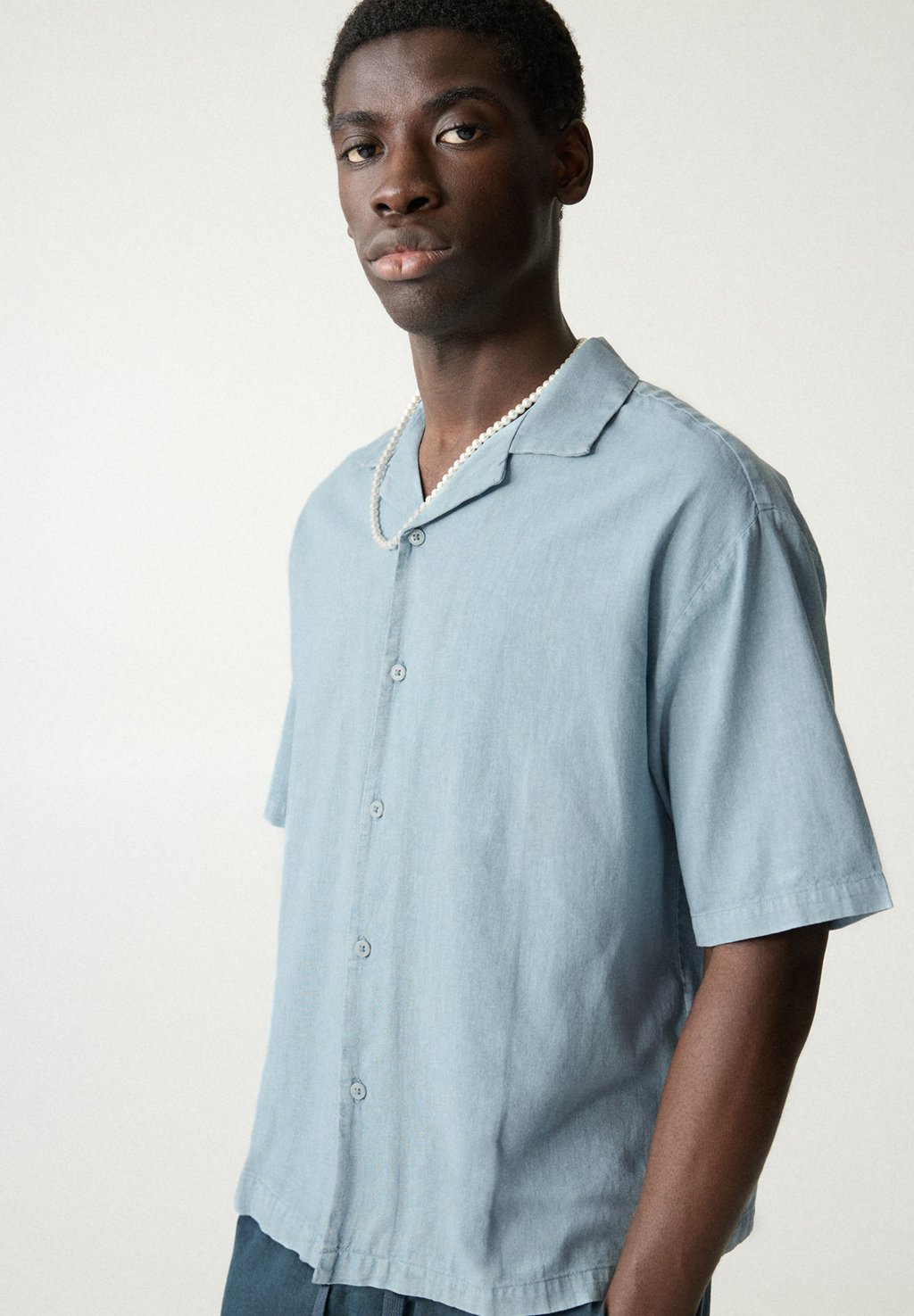 Рубашка LINEN BLEND PULL&BEAR, светло-голубой 3 100₽