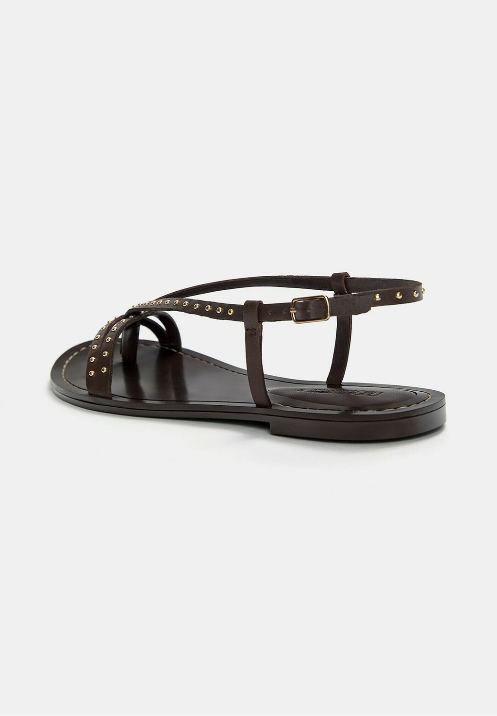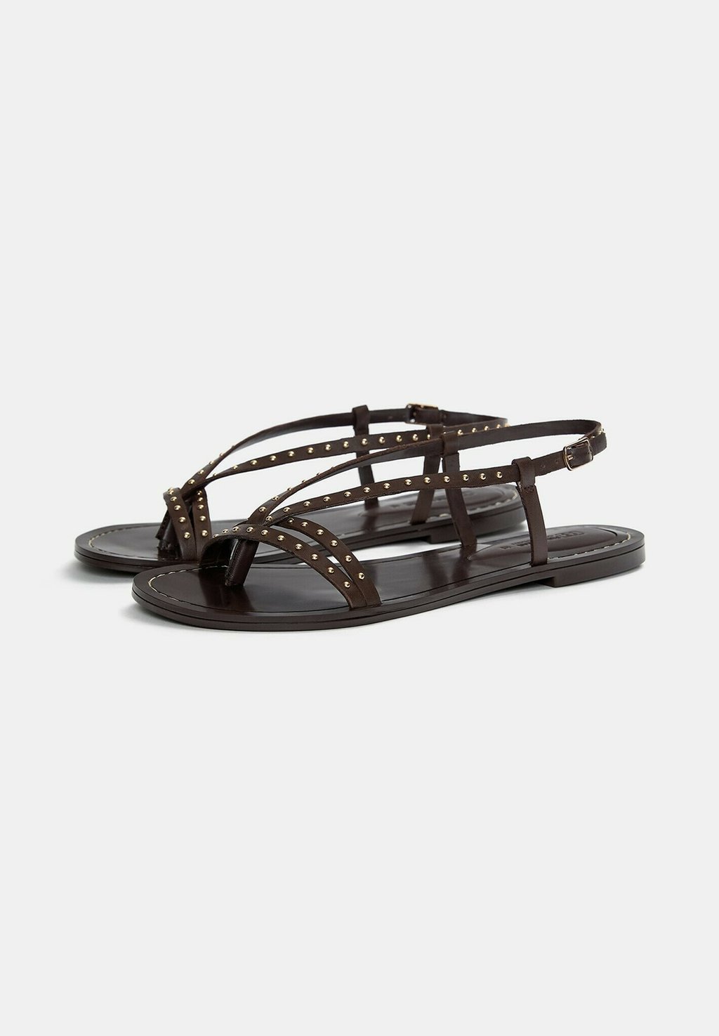 Сандалии с Т-образной застежкой FLAT PULL&BEAR, коричневый