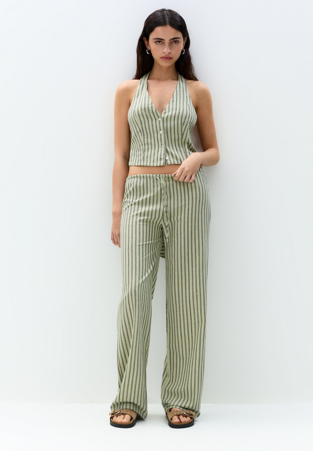 Топ STRIPED - Blouse PULL&BEAR, хаки