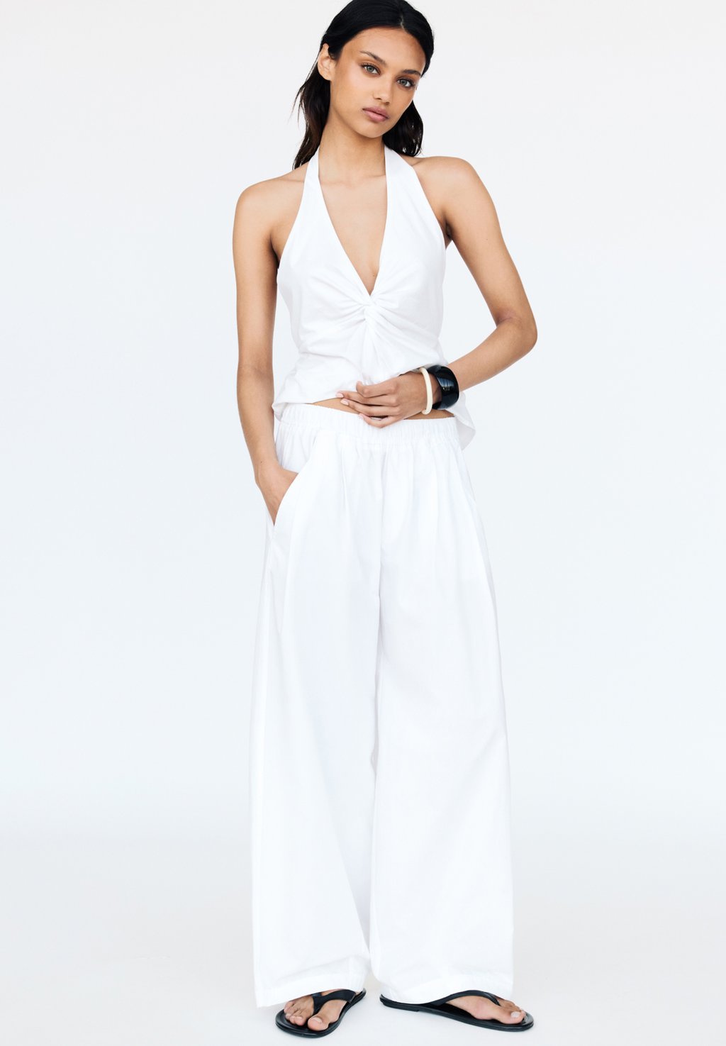 Брюки BARREL WITH ELASTICATED WAIST PULL&BEAR, белый