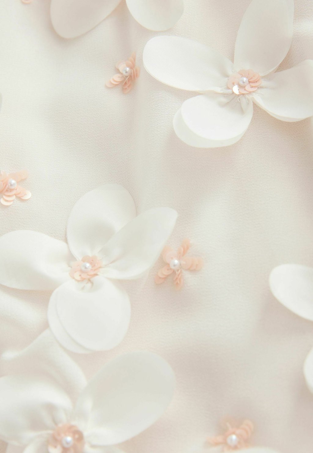 Детали: Цветочная аппликация, нижняя юбка, аппликация из камней, окантовка