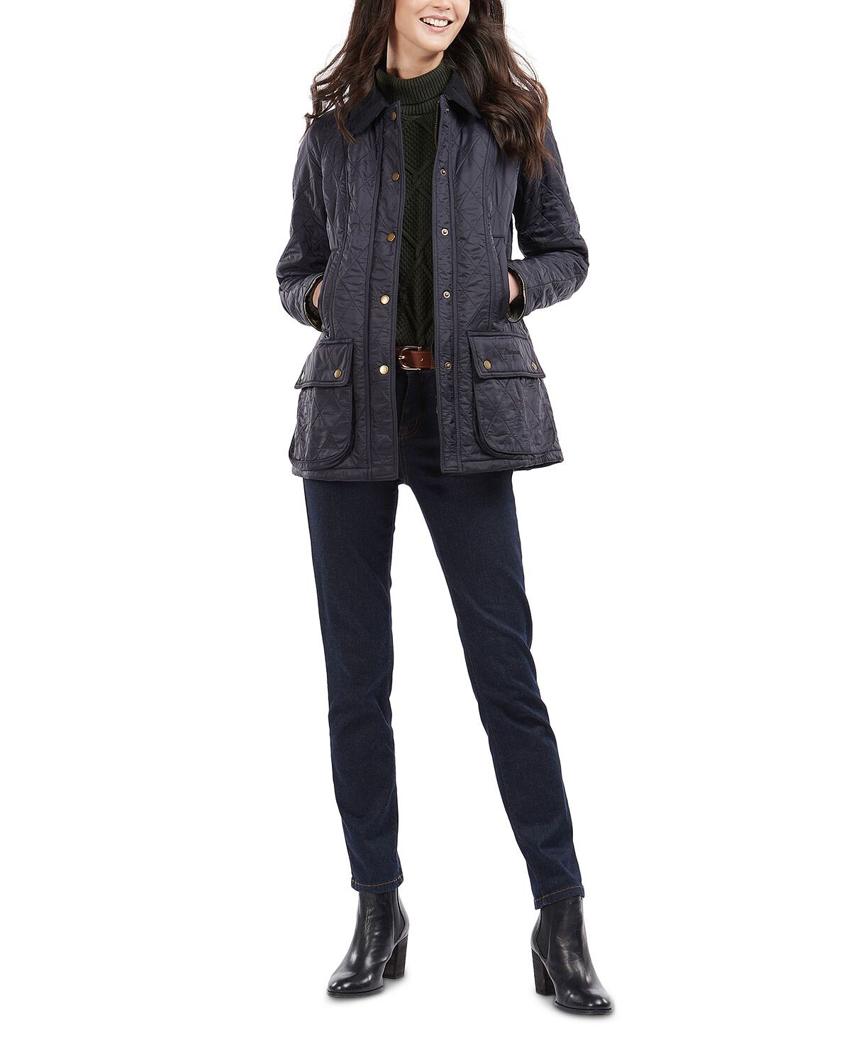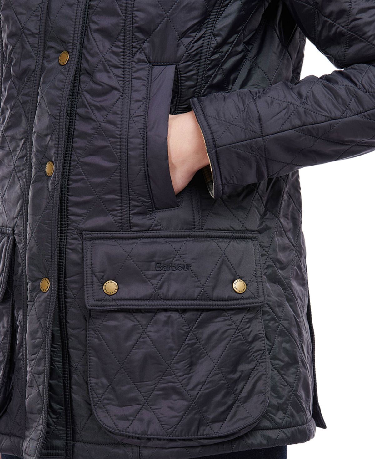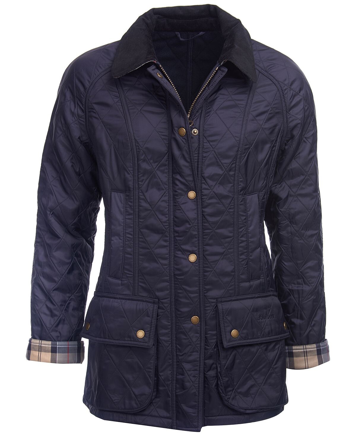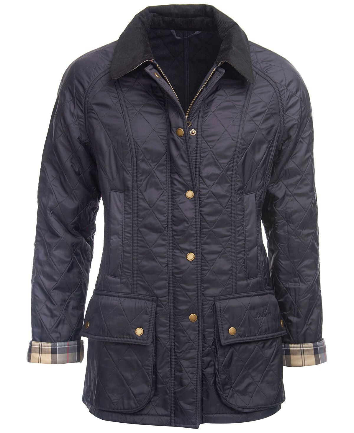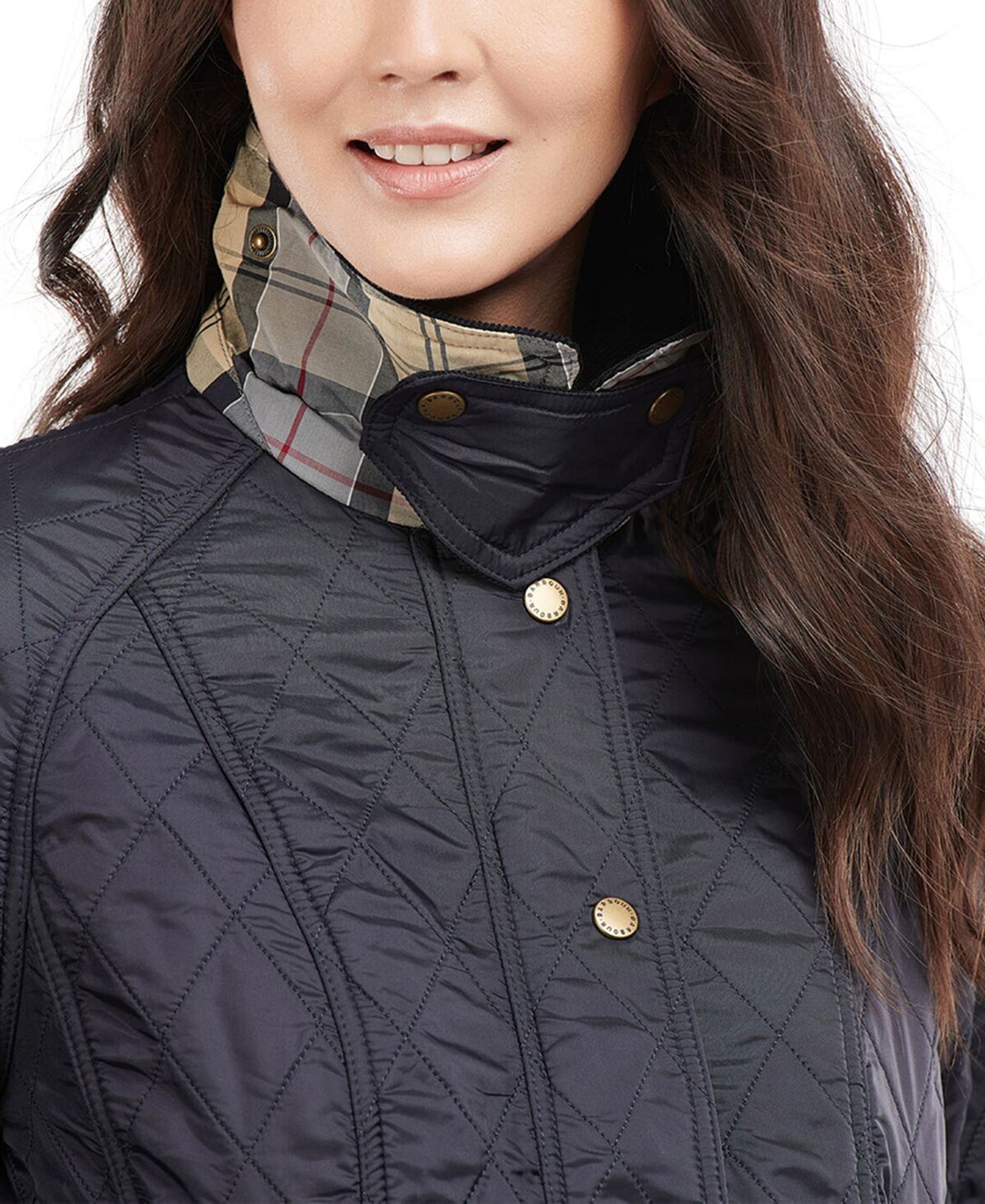 В непогоду вам подойдет эта куртка от Barbour с застежками на кнопках спереди и подкладкой в ​​клетку с логотипом.
