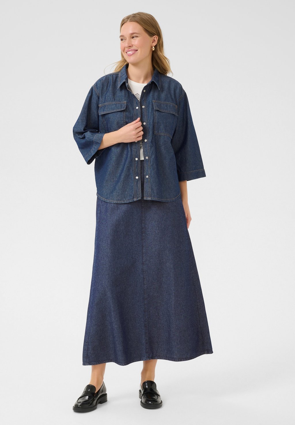 Юбка-колокол KAFFE KAALICE LONG SKIRT, A-SHAPE, синий
