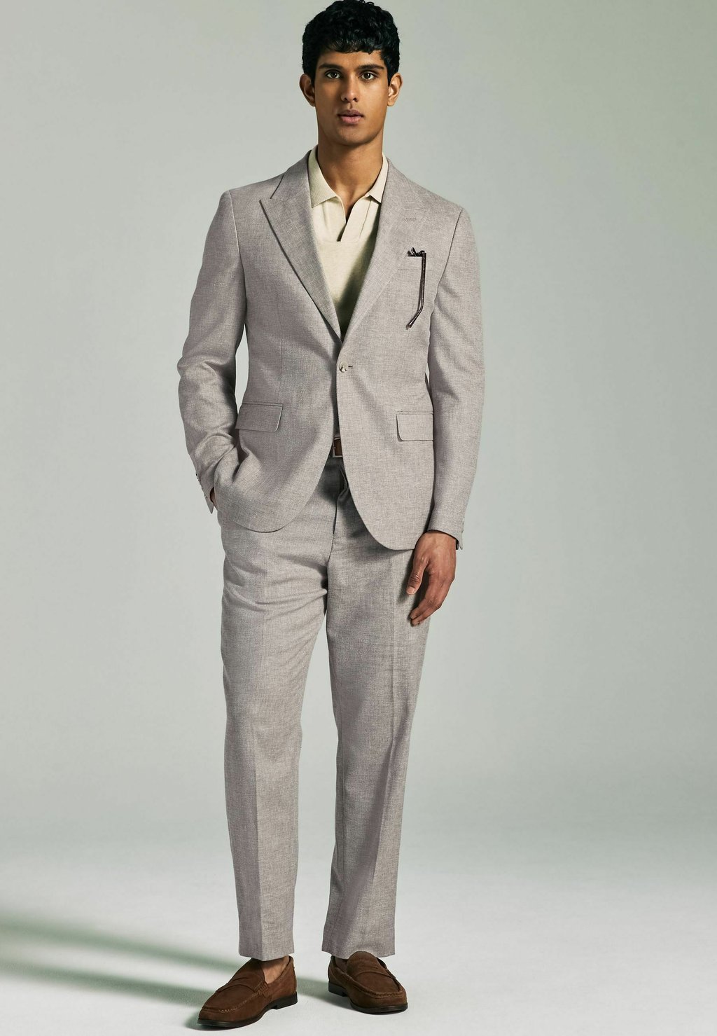 Материал внешней ткани: 35% полиэстер, 34% хлопок, 15% вискоза, 15% лен, 1% эластан