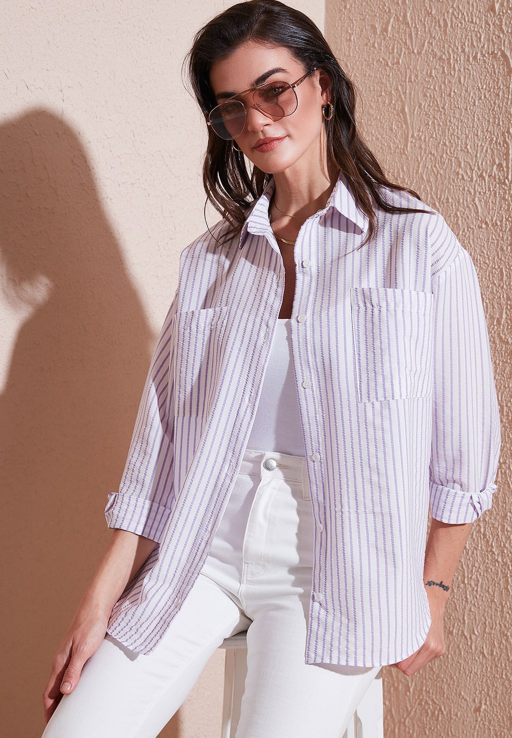 Блузка на пуговицах LELA, сиреневый