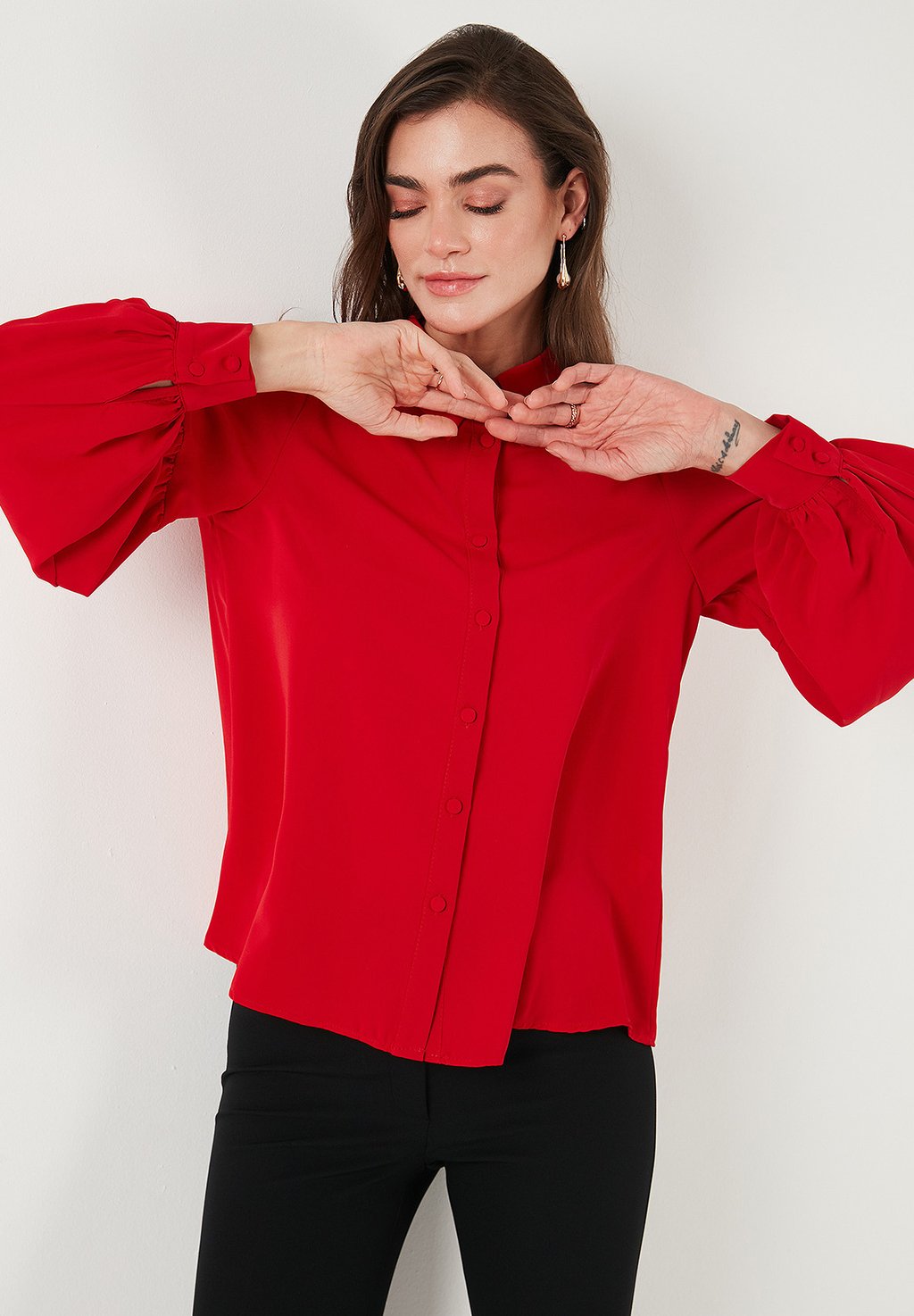 Блузка на пуговицах LELA, красный