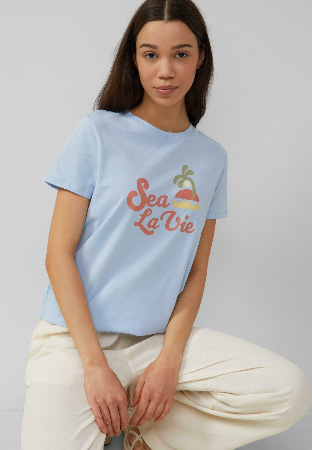 Футболка с принтом QS, светло-голубой