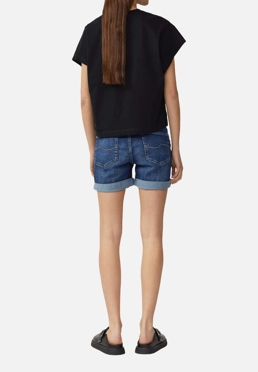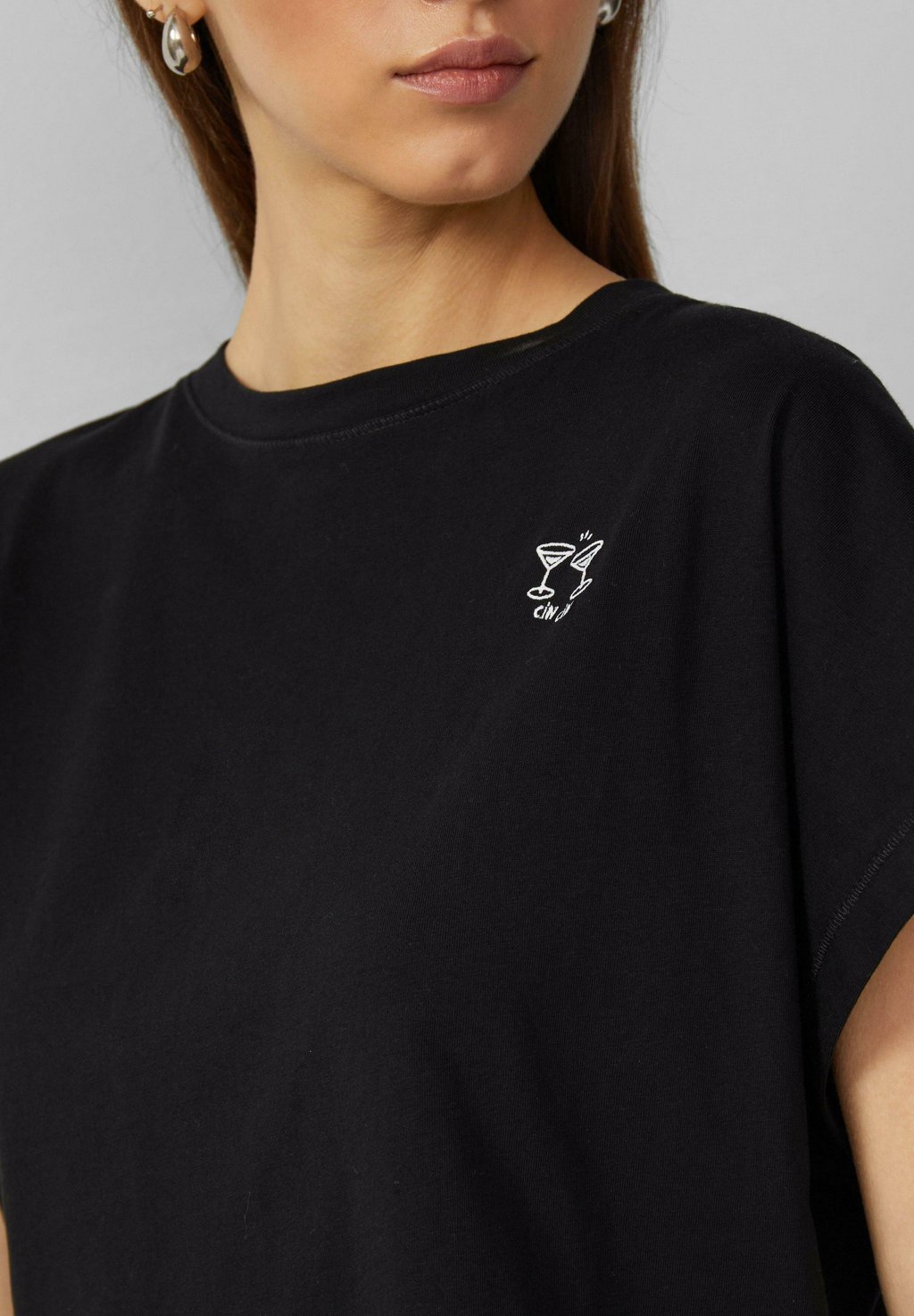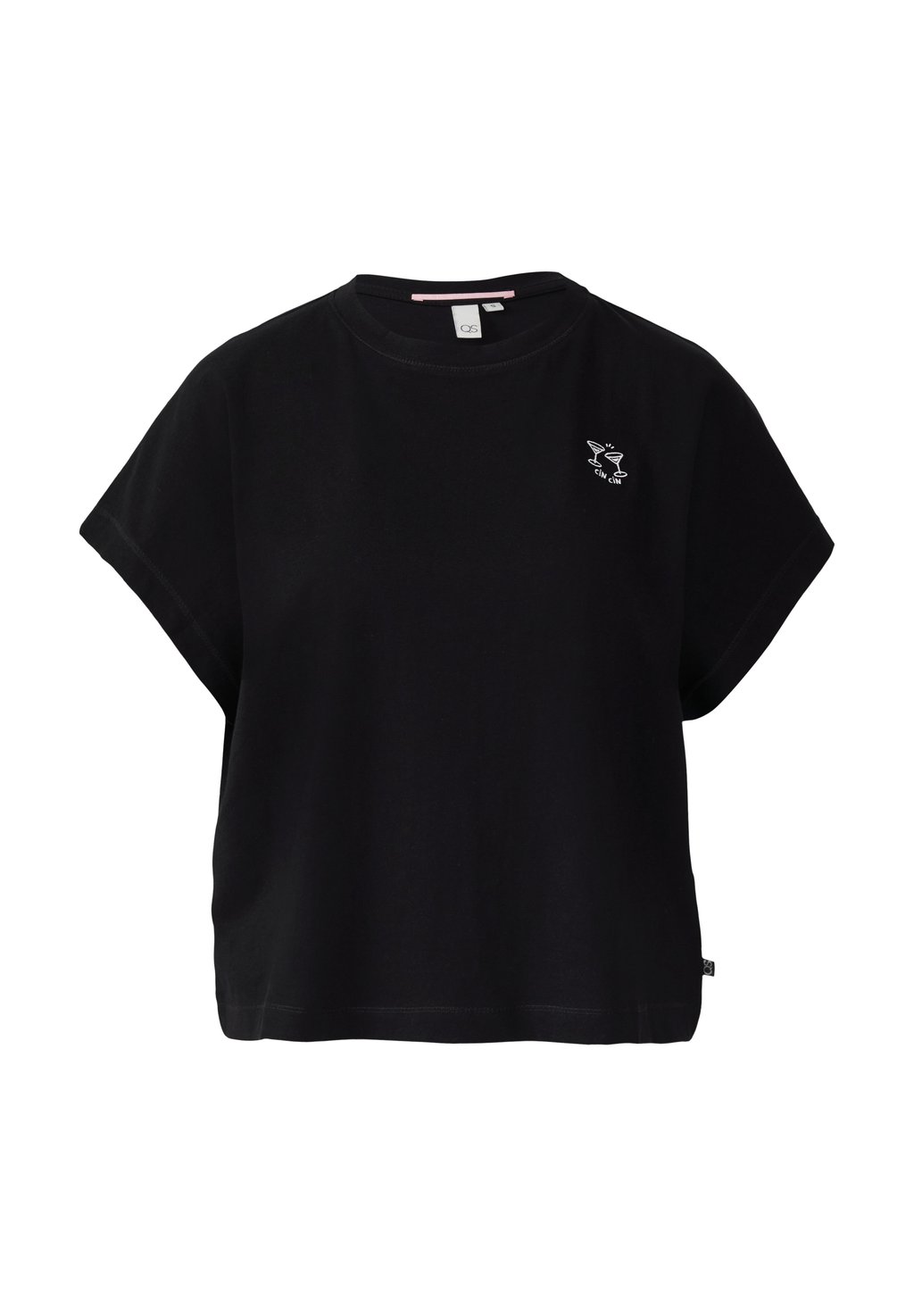 Футболка с принтом LÄSSIGES MIT ÜBERSCHNITTENER SCHULTER QS, черный
