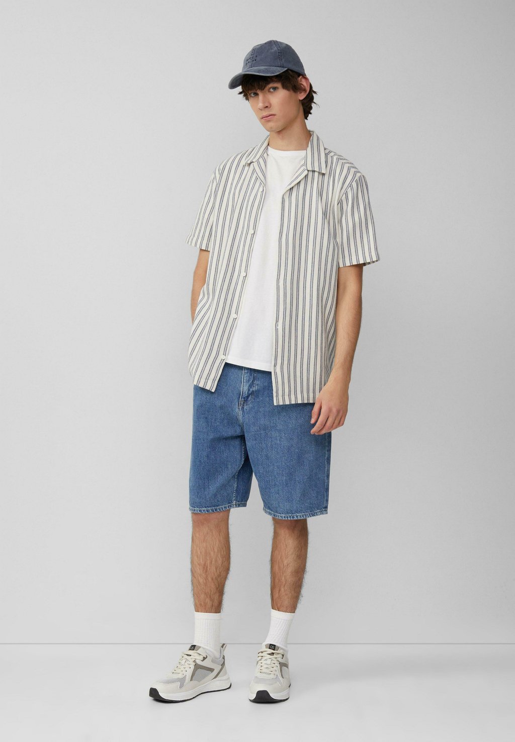 Рубашка RESORT FIT MIT STRUKTURSTREIFEN QS, кремовый