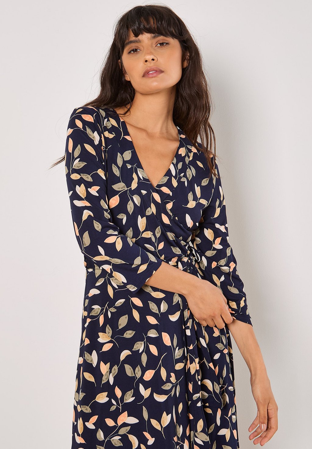Платье из джерси LEAF PRINT WRAP Apricot, темно-синий